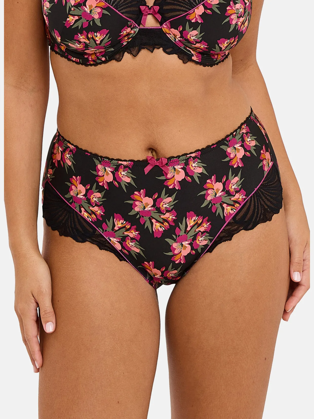 Découvrez le shorty Oriane SANS COMPLEXE, une fusion de dentelle délicate et de microfibre imprimée au motif floral.