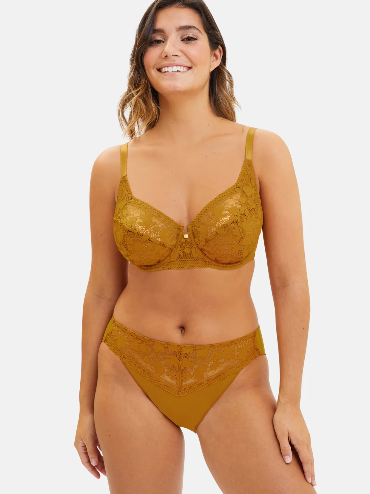Dentelle 82% polyamide, 18% élasthanne. Tissu 82% polyamide, 18% élasthanne. Doublure dos 88% polyamide, 12% élasthanne. Doublure 100% polyamide.