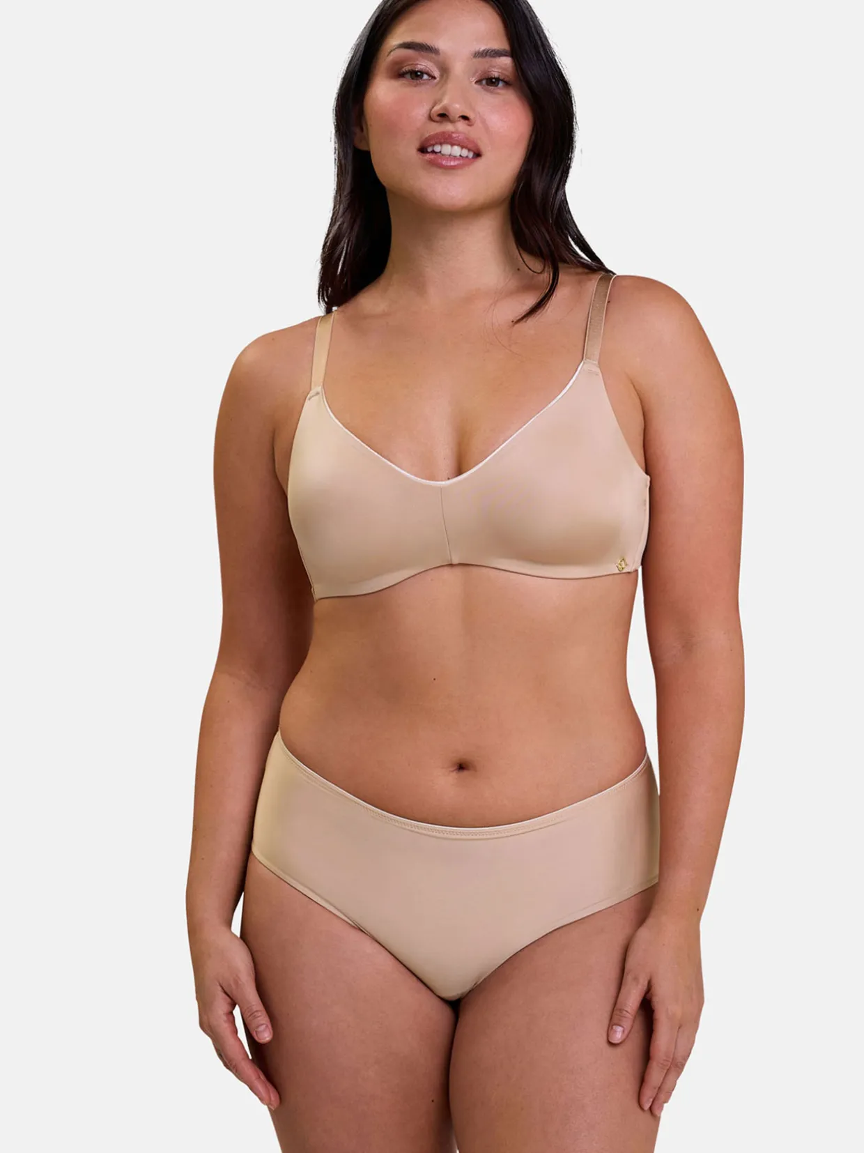 Unseen, l’allié confortable et invisible au quotidien. Ce soutien gorge moulé sans armatures est à la fois très confortable et invisible. Le tout est en microfibre satinée stretch douce et confortable. Un liseré contrasté sublime le décolleté. Un bijou doré au signe SC est placé sur le côté. Les bretelles satinées multi positions sont réglables sur toute la longueur.