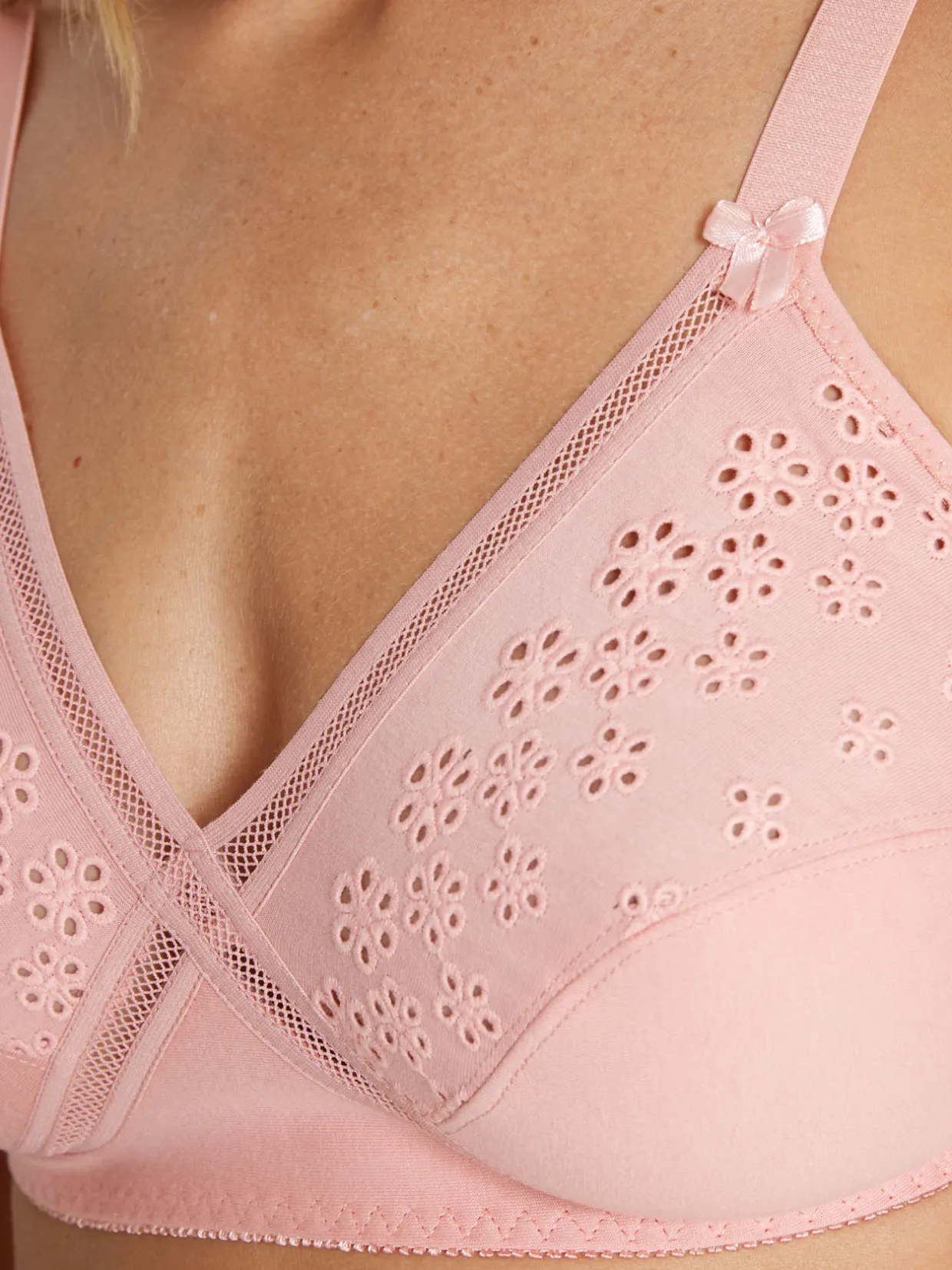 Broderie anglaise et coton : un duo séduction et confort pour ce lot de 2 soutiens-gorge rassurants sans armatures !