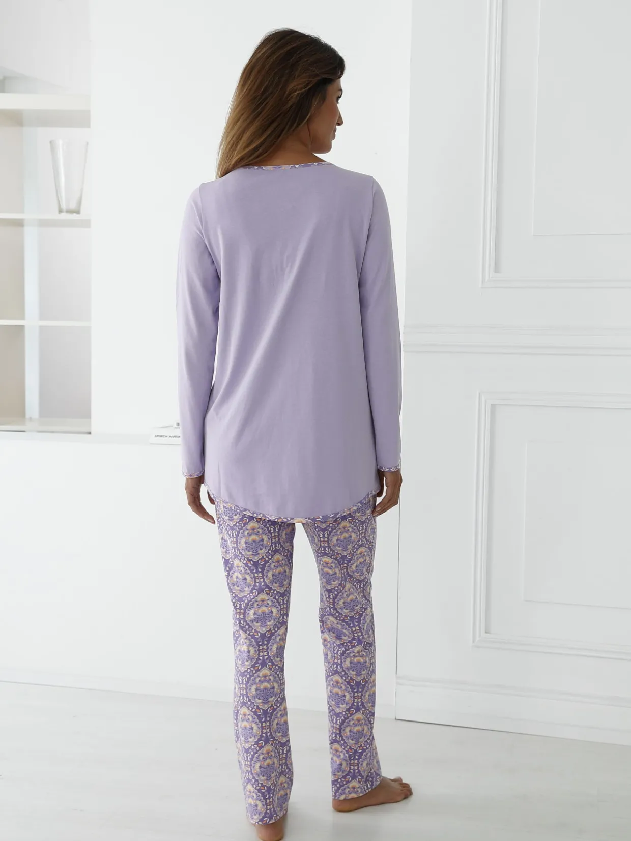 Tonalité et imprimé très actuels pour le pyjama en coton qui fait une arrivée joliment remarquée dans notre collection de lingerie de nuit ! Sa maille jersey se fait toute douce et tout confort… on adore !