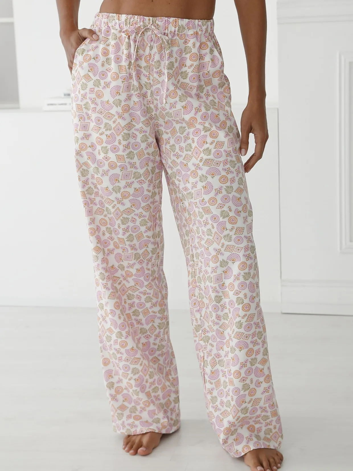 Souplesse et effet soyeux pour la matière de ce pyjama qui vous promet des nuits tout en douceur. Dans un esprit fantaisie, les empiècements épaules et le bas de pyjama affichent un bel imprimé au style ethnique.