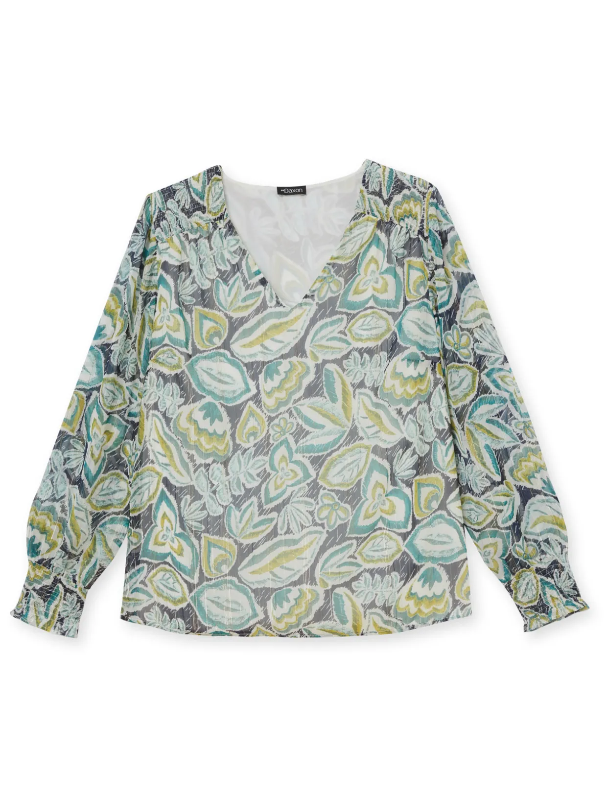 Des détails smocks aux épaules et aux poignets pour cette blouse imprimée : la petite touche d’originalité bienvenue. Idée look : jouer l’effet robe en l’associant à la jupe imprimée courte ou longue assortie !