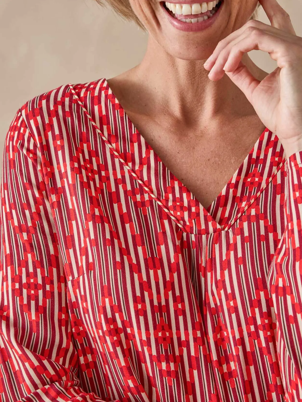 Un imprimé aux tonalités rouges et voilà que cette blouse fluide met de l’éclat dans vos looks de saison !