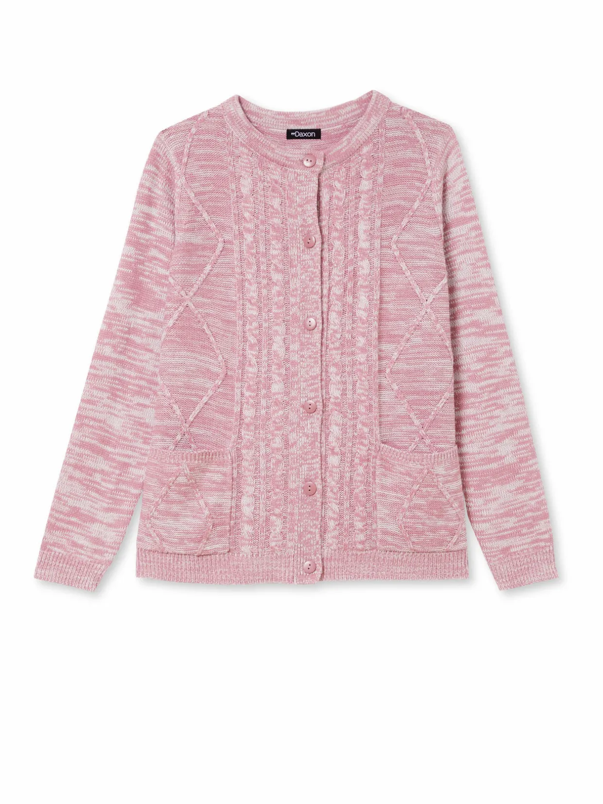 On porte ce cardigan en toute saison pour réchauffer nos tenues ! Très douillette, sa maille 100% acrylique est animée d’un jeu de côtes plates et de torsades devant. Le dos et les manches longues sont en jersey.