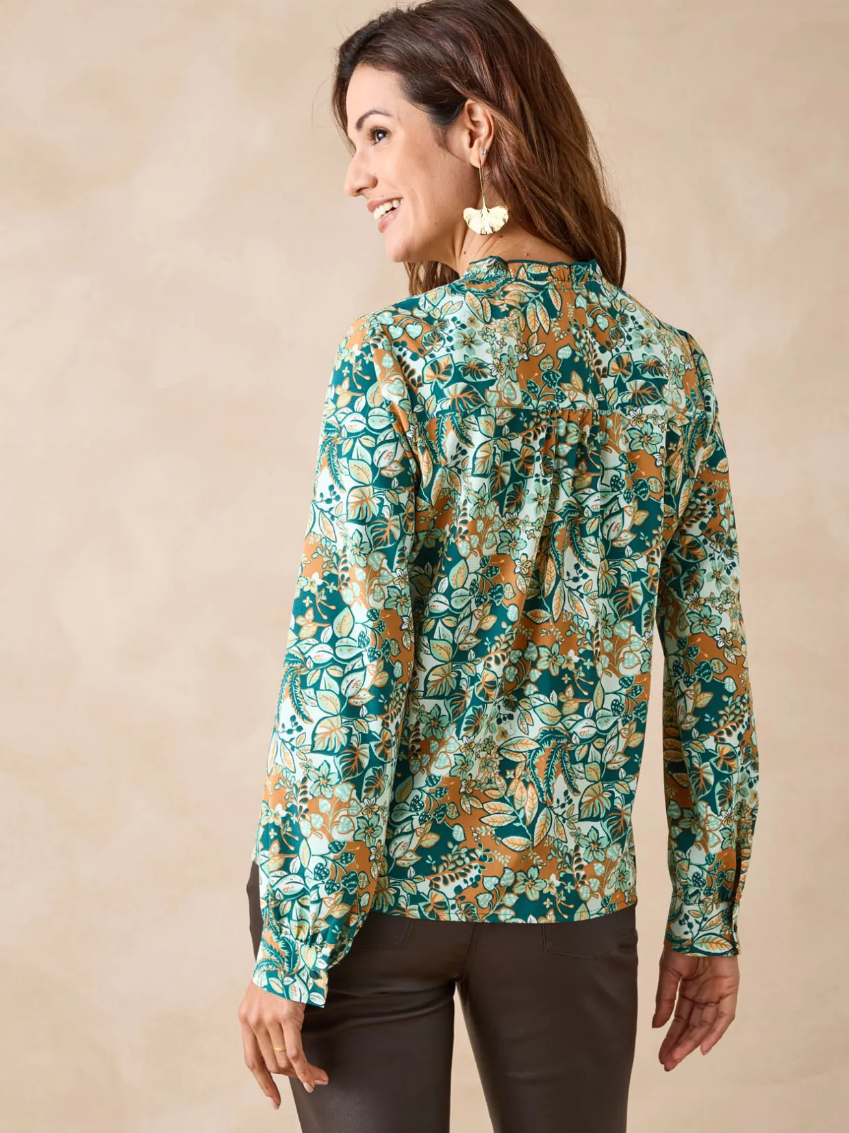 Chic, un rien romantique, le chemisier col volanté joue l’imprimé tendance. Sous un gilet, une petite veste, avec un pantalon comme avec une jupe, il est le petit haut parfait !