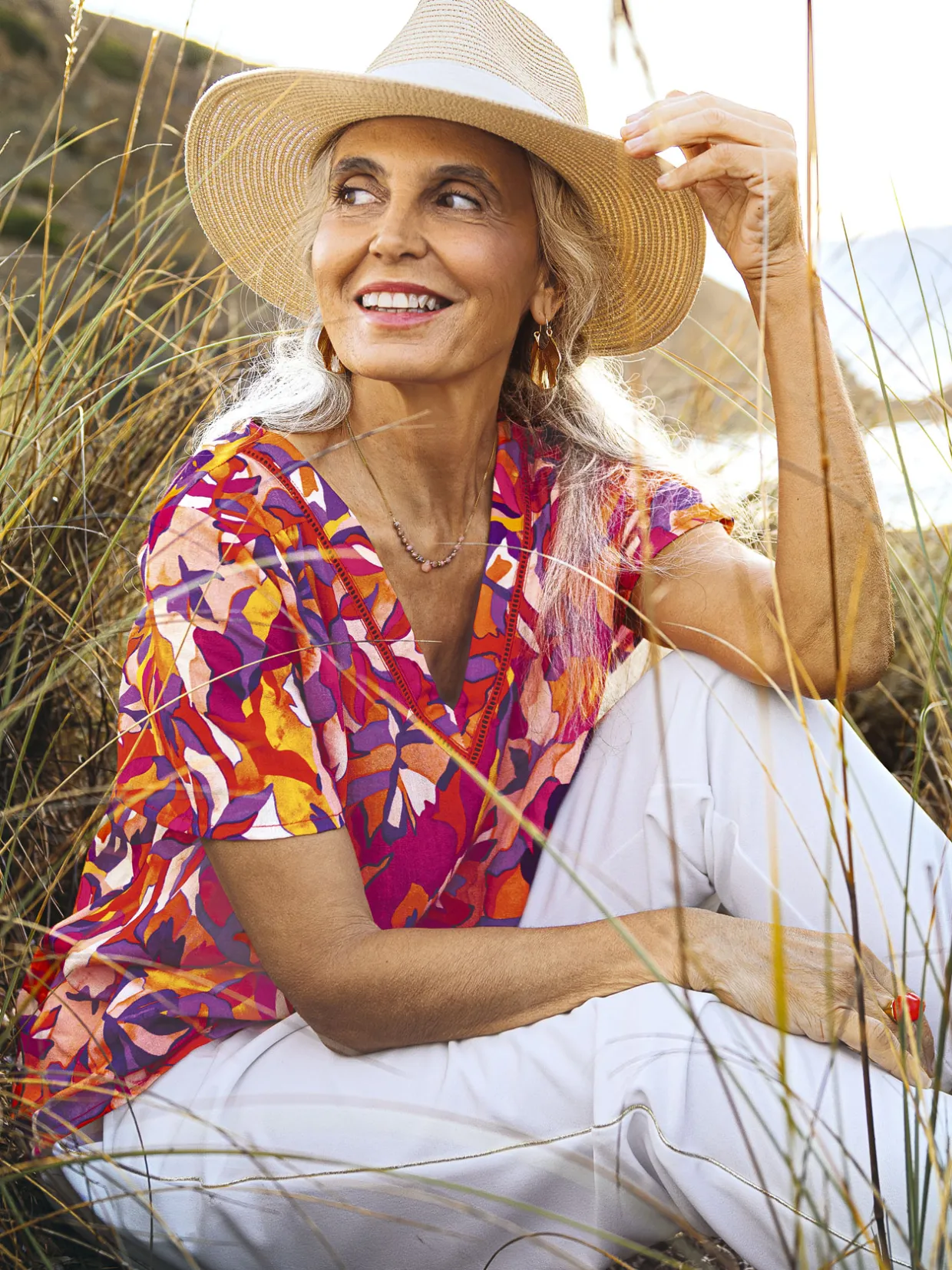 Ce chemisier imprimé femme est conçu pour s’adapter à toutes les morphologies : petites et grandes tailles.