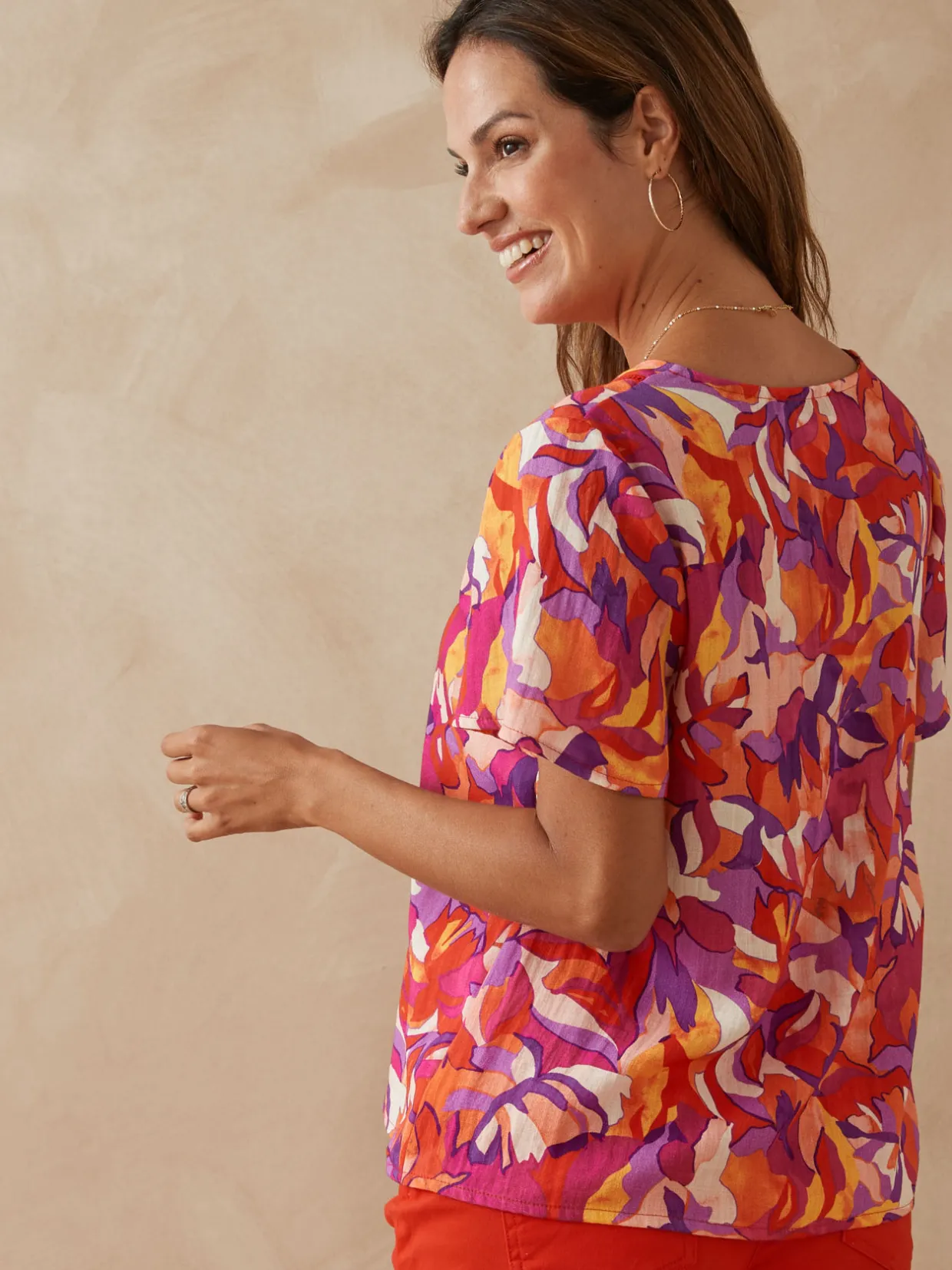 Et si l’imprimé star de la saison était celui-ci ? Autour du rouge et du violet, il décline mille et une nuances sur ce chemisier fluide, qui annoncent un été radieux ! On aime son encolure fantaisie aux détails très féminins.