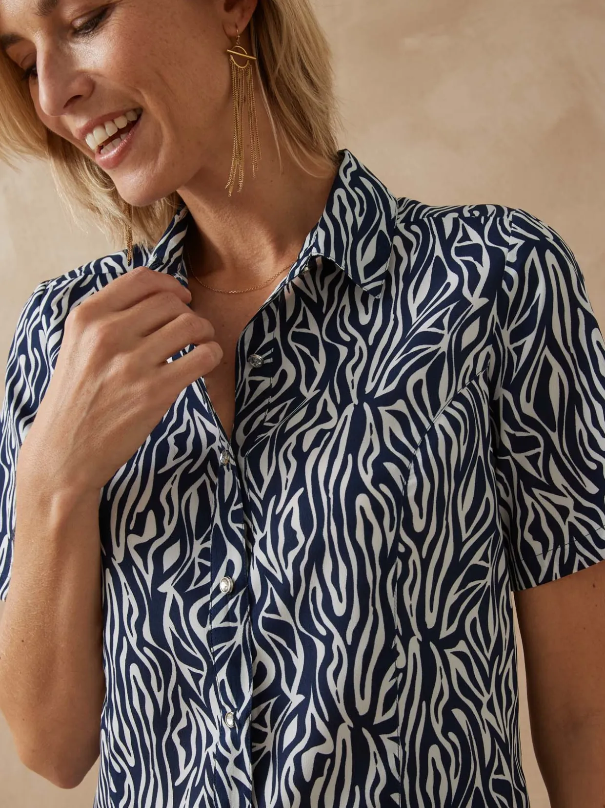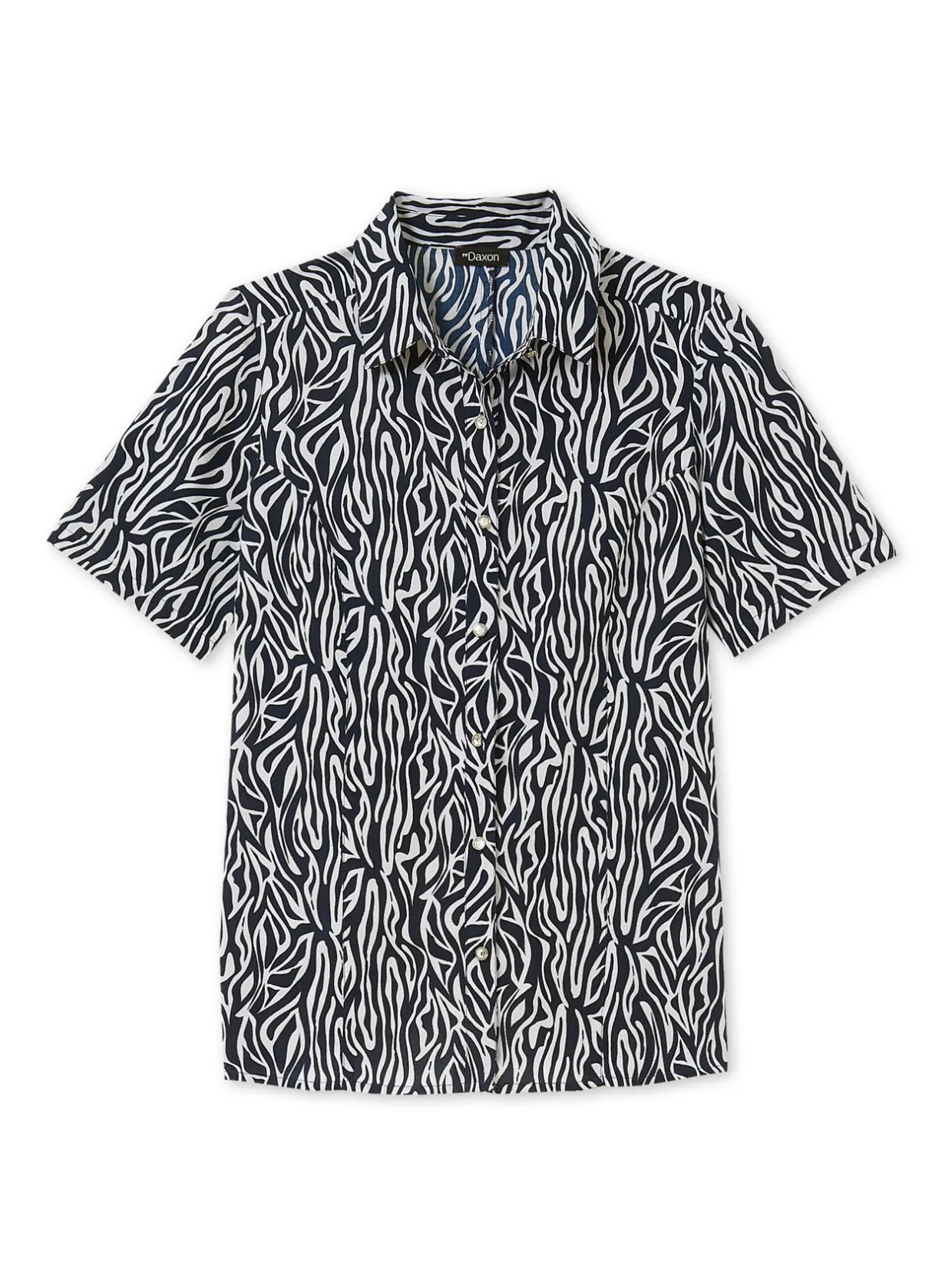 Un petit chemisier manches courtes à la coupe classique et à l’imprimé très stylé. Son tissu fluide en fait une petite pièce du dressing facile à entretenir et agréable à porter.