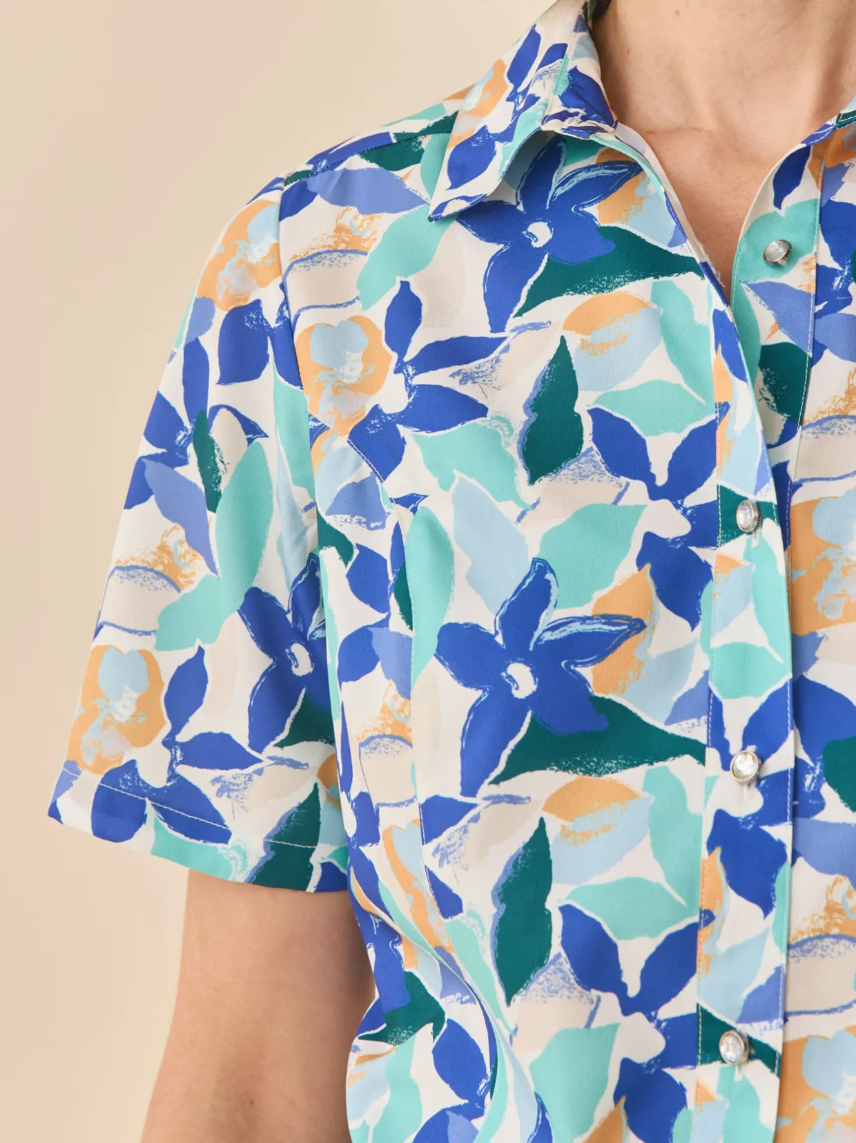 Un petit chemisier manches courtes à la coupe classique et à l’imprimé très stylé. Son tissu fluide en fait une petite pièce du dressing facile à entretenir et agréable à porter.