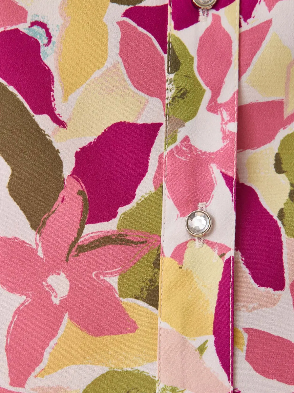 Un petit chemisier manches courtes à la coupe classique et à l’imprimé très stylé. Son tissu fluide en fait une petite pièce du dressing facile à entretenir et agréable à porter.