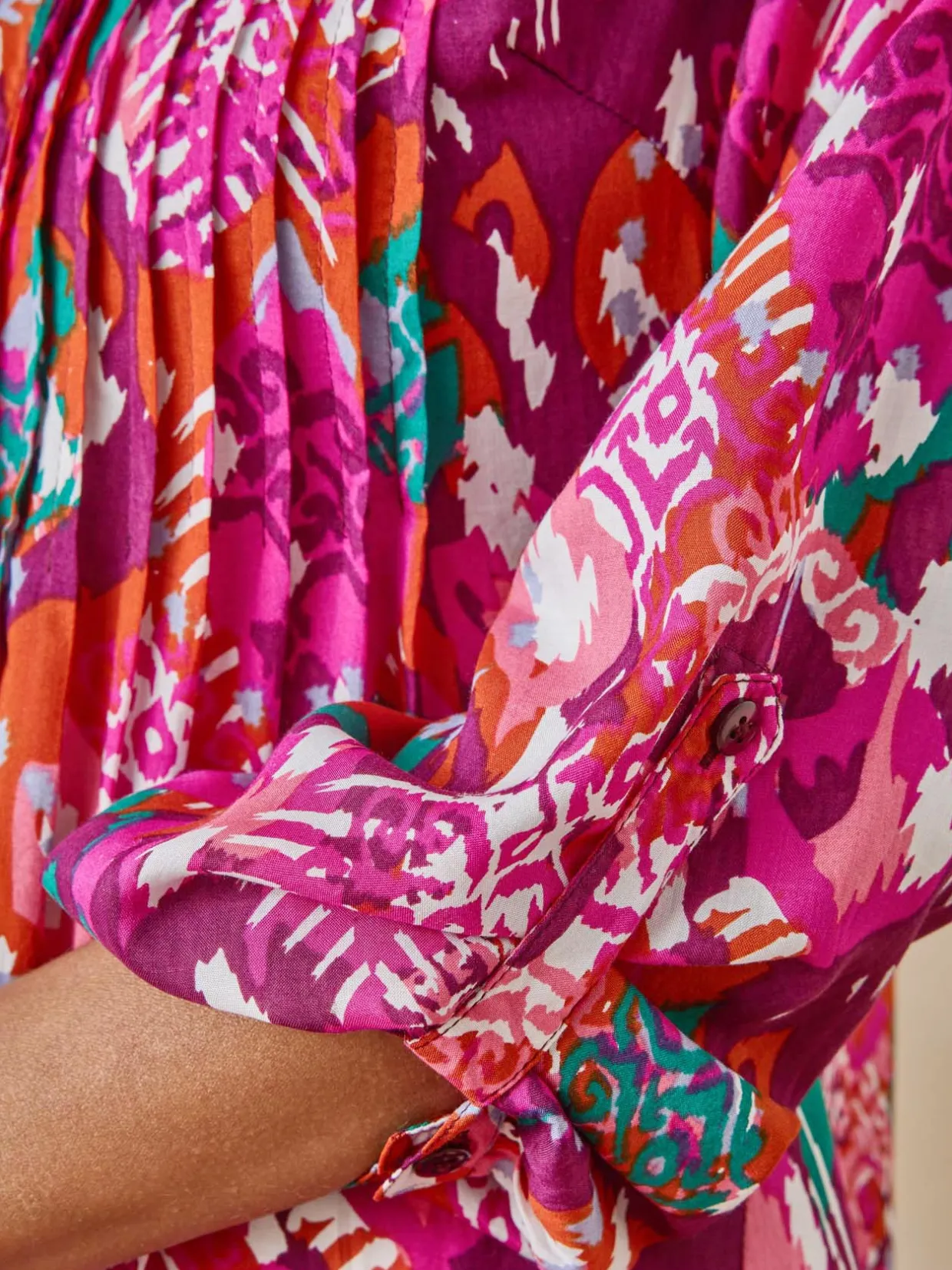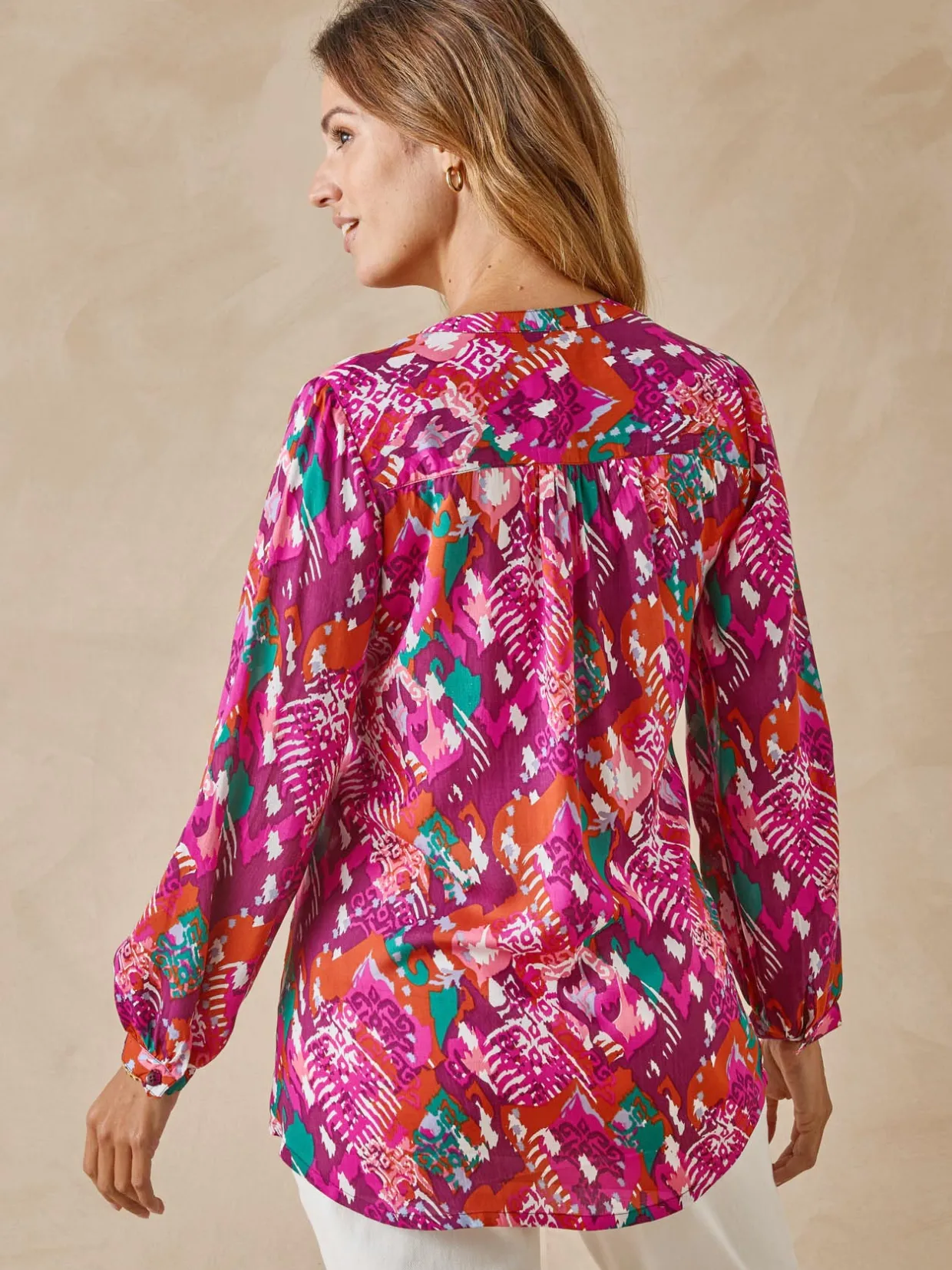 Un chemisier tunique imprimé, à porter ceinturé ou non. Son tissu viscose est agrablement fluide. Un chemisier long à ajouter à la shopping-liste !