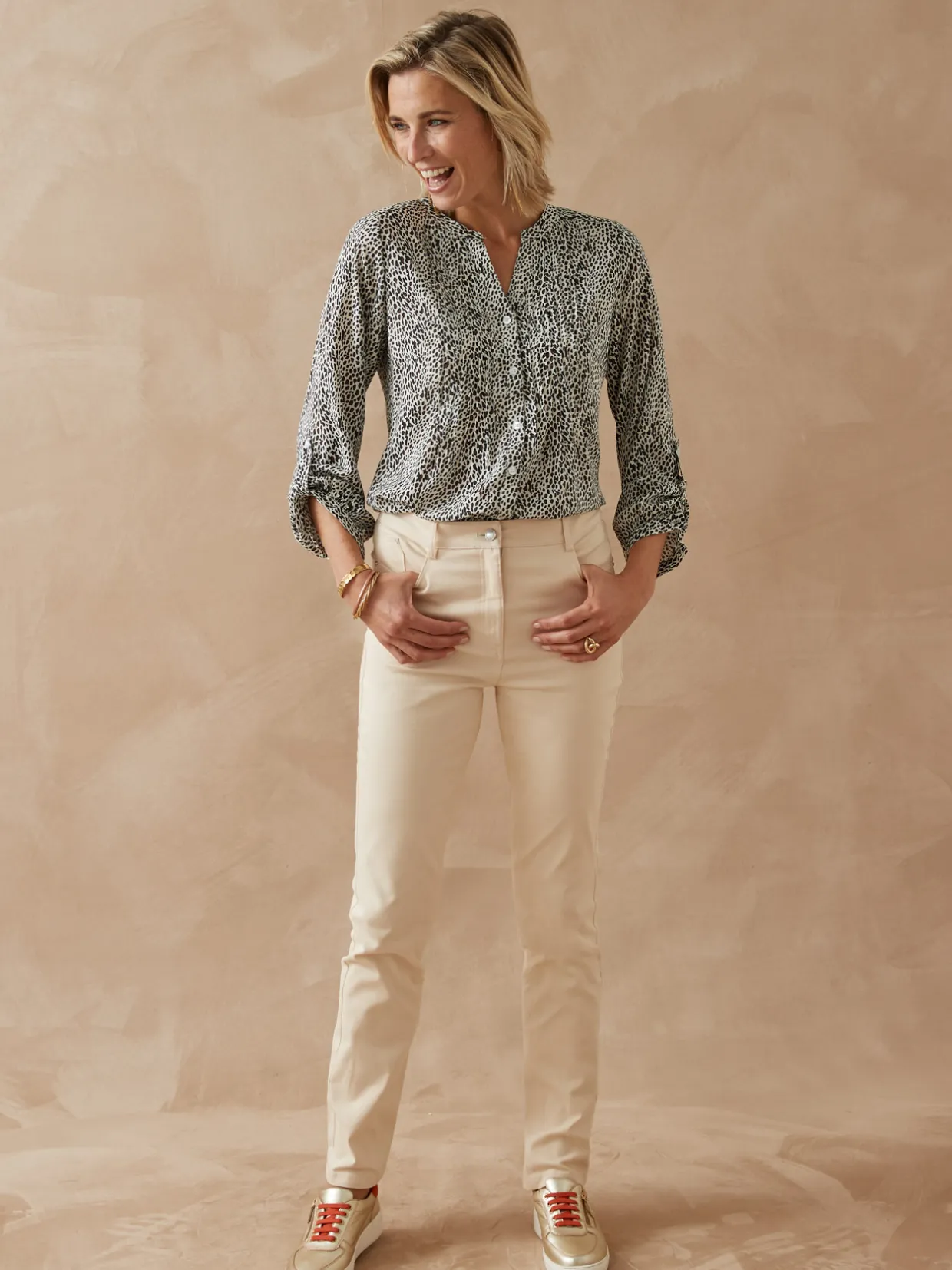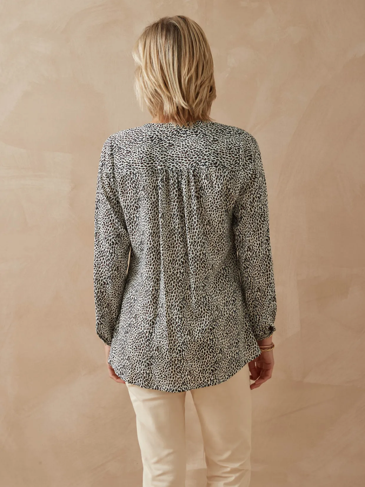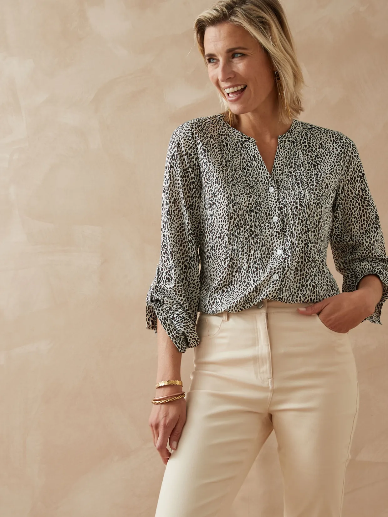 Un chemisier tunique imprimé, à porter ceinturé ou non. Son tissu viscose est agrablement fluide. Un chemisier long à ajouter à la shopping-liste !