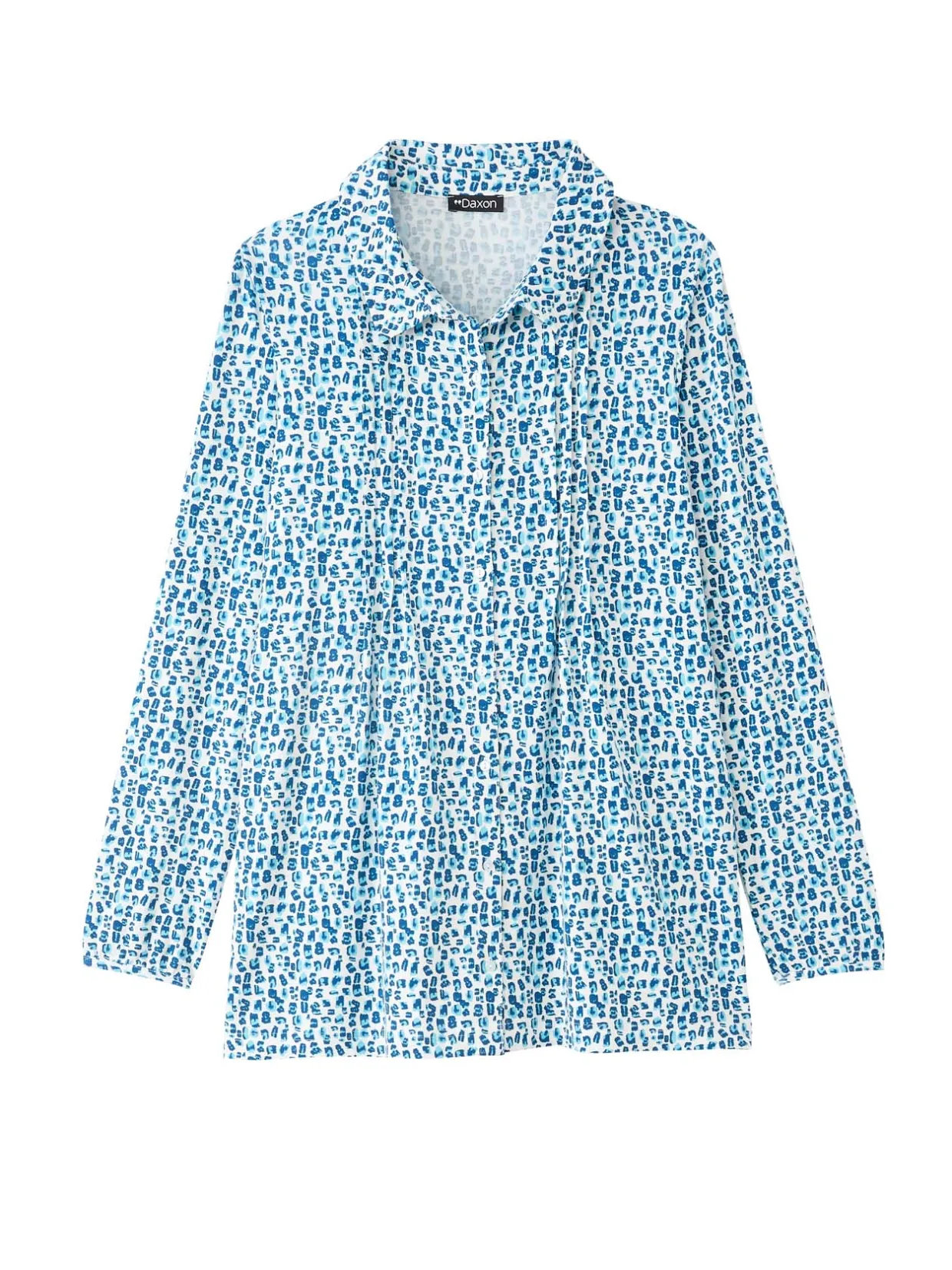 Longueur de ce chemisier à plis : 70 à 75cm selon les tailles.