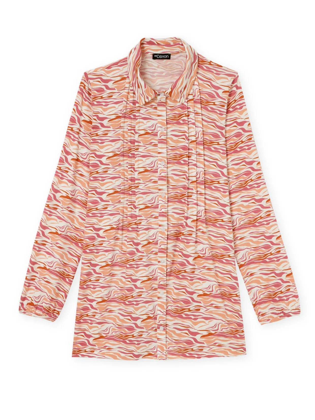 Tout boutonné devant, avec de jolis plis couchés. Poignets froncés boutonnés à fente indéchirable. Pli creux au dos. Base arrondie.