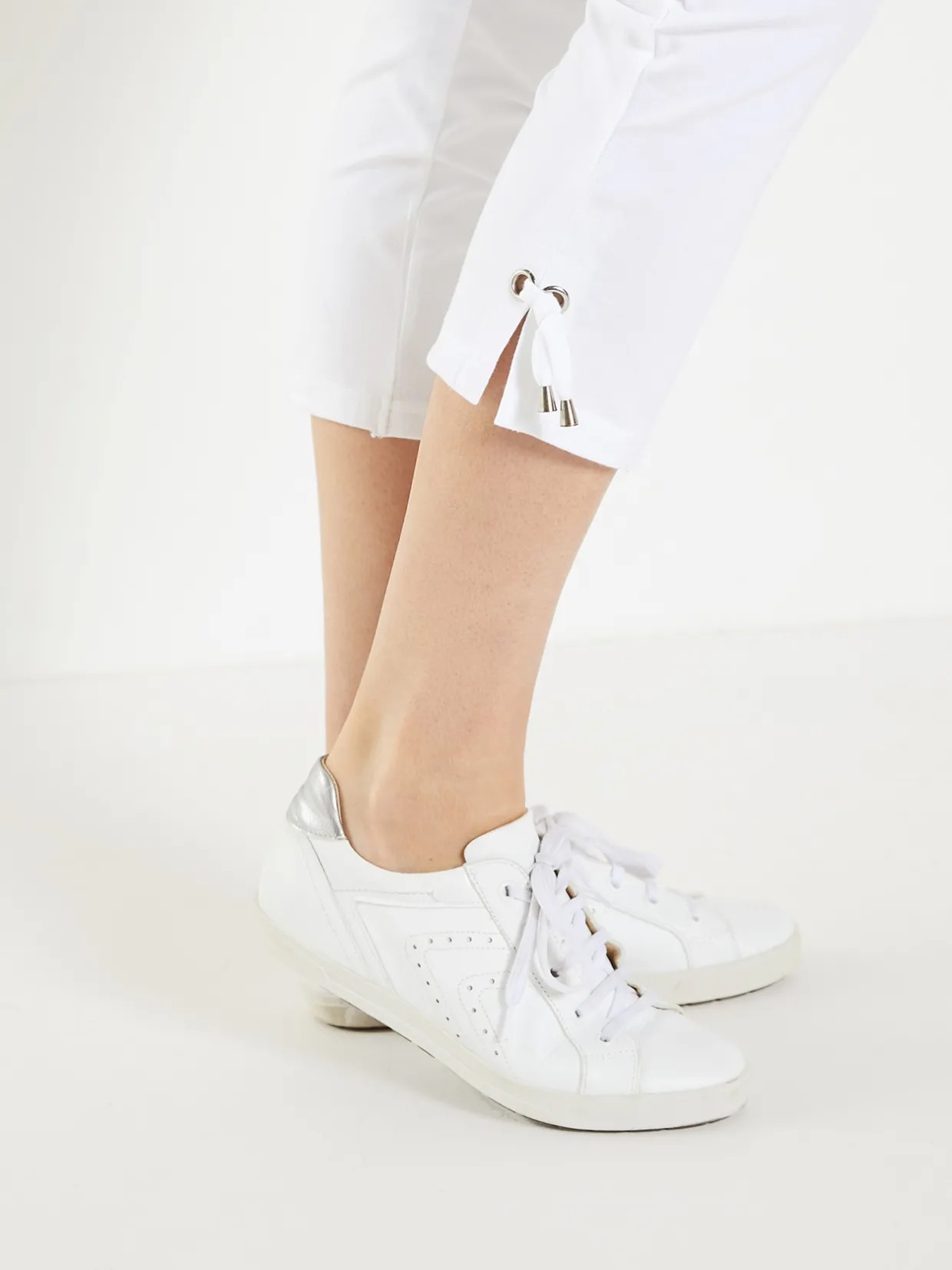 Le corsaire à lacets : un indispensable de l’été qui s’associe avec tout ! On aime sa fantaisie de nouette sur gros oeillets argentés au bas des jambes.