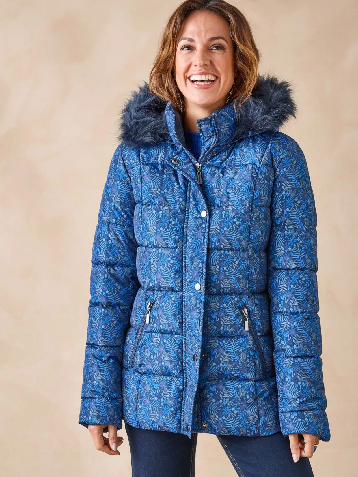 Cette parka imprimée femme est conçue pour s’adapter à toutes les morphologies : petites et grandes tailles.