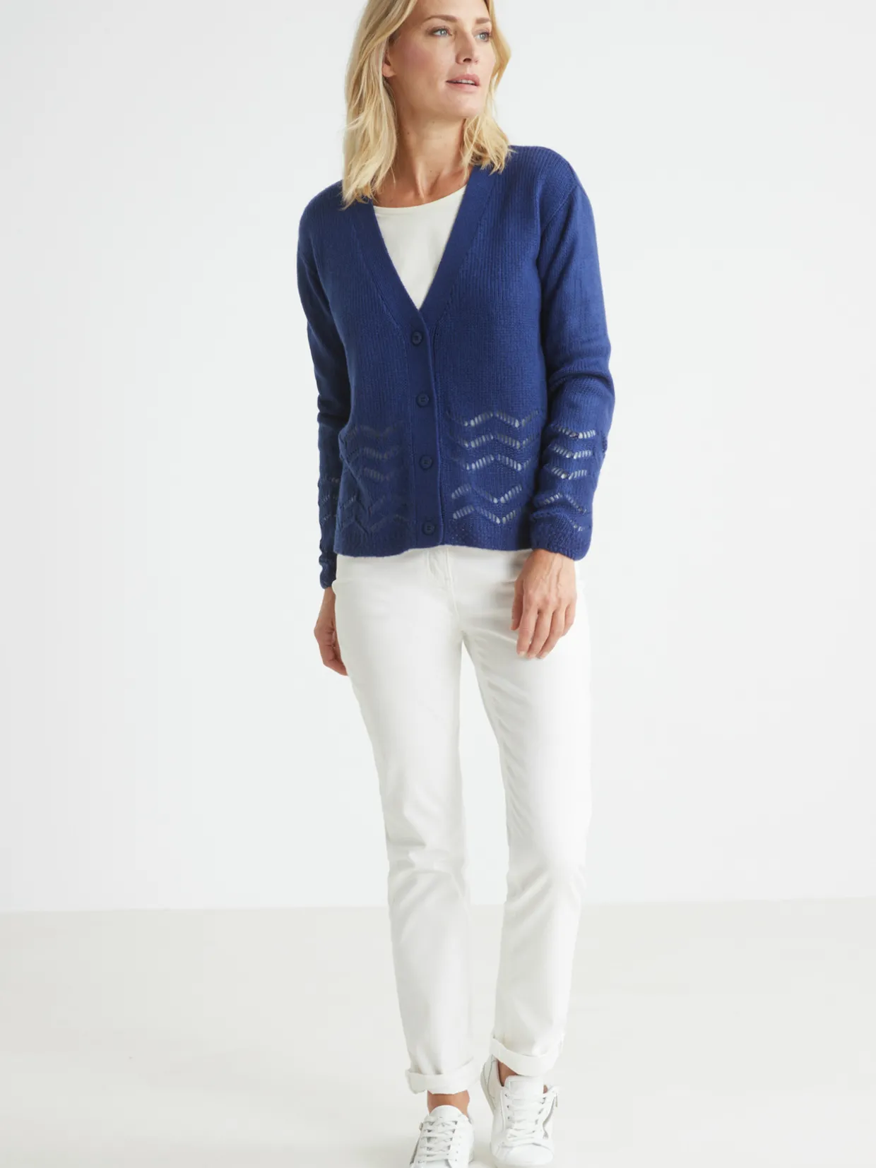 Bien couvrant, ce gilet long permet de masquer les petites rondeurs tout en allongeant la silhouette. Un gilet V, pièce phare du dressing !