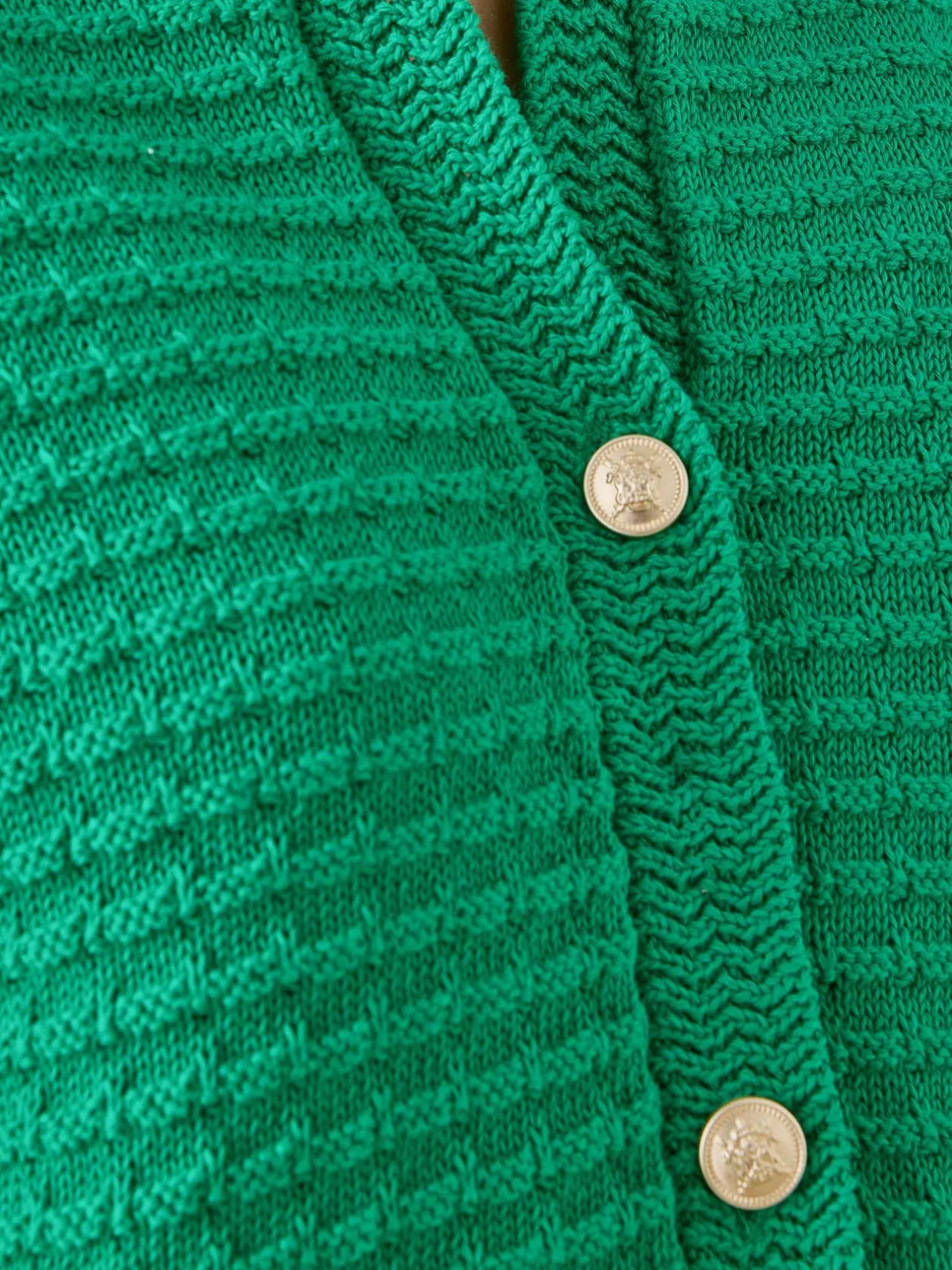 Un gilet col polo qui s’offre une petite allure « veste » très chic avec son col polo, ses finitions point fantaisie et sa maille de belle tenue. A porter ouvert, sur un caraco ou un joli tee-shirt, ou fermé.