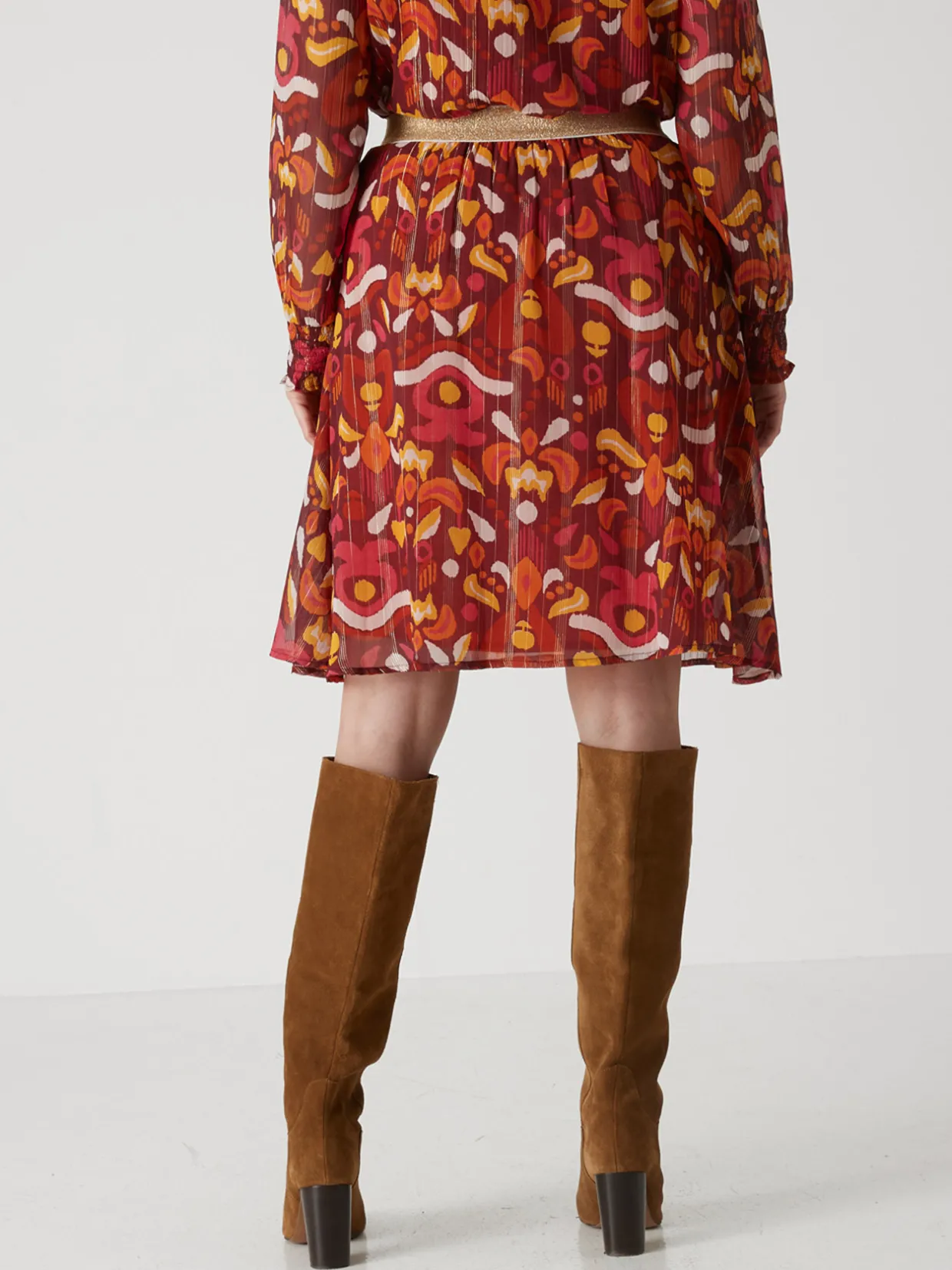 Nuances turquoise ou tonalités orangées… le plus difficile est de choisir entre les 2 imprimés de cette jupe courte. Sa longueur est parfaite pour faire danser joliment la silhouette !