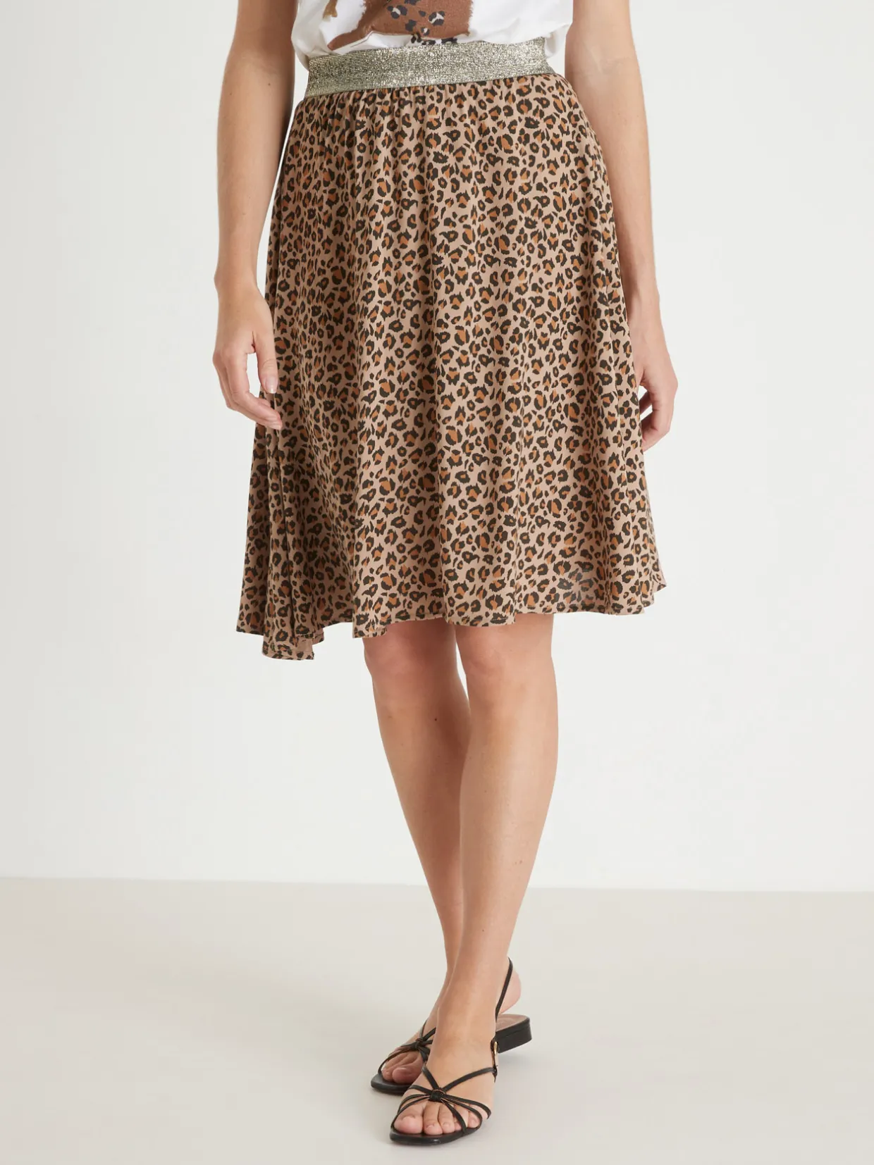 Cette jupe imprimée est conçue pour toutes les morphologies : petites et grandes tailles.