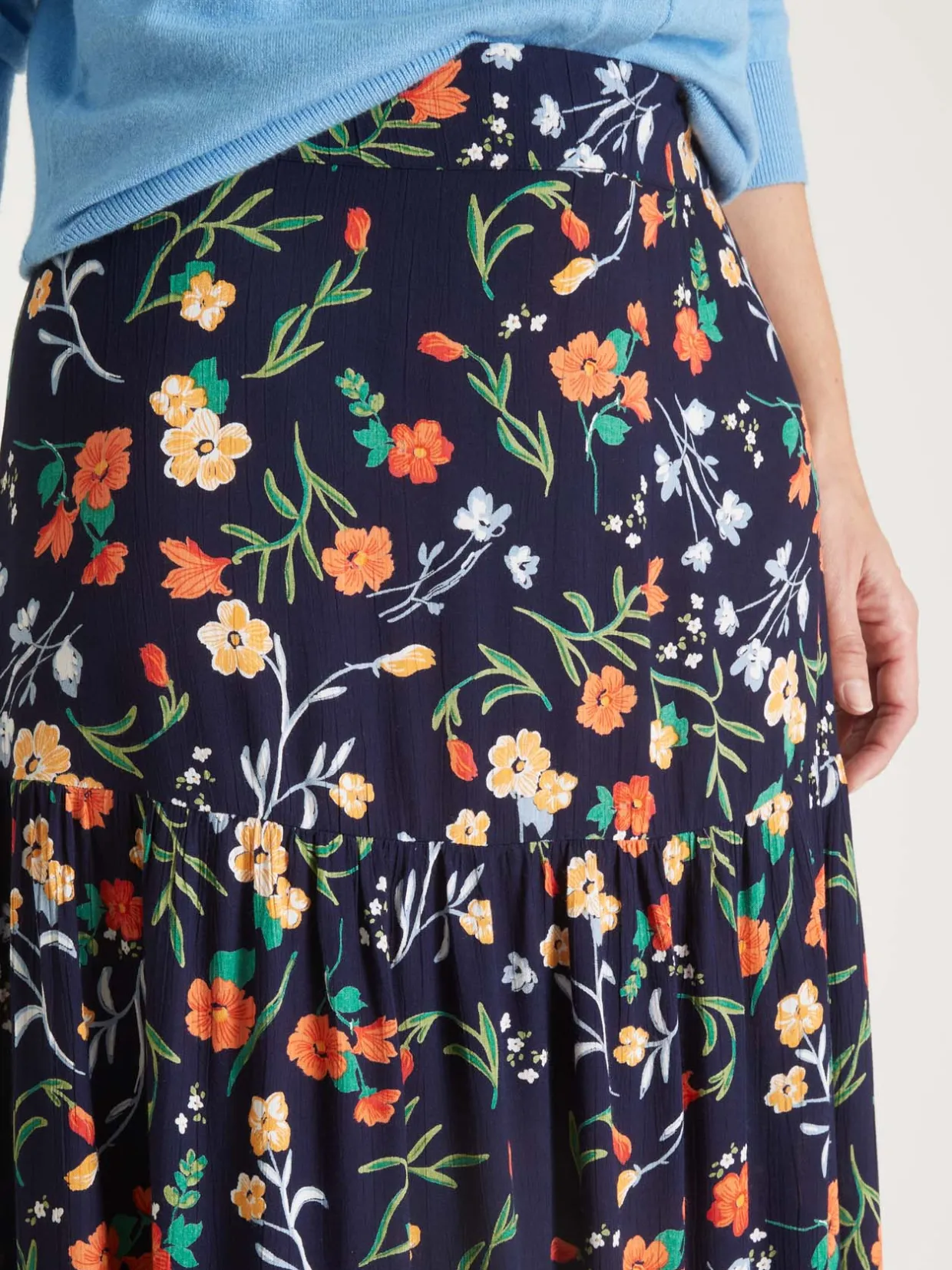 Cette jupe ample élastiquée est conçue pour s’adapter à toutes les morphologies : petites et grandes tailles.