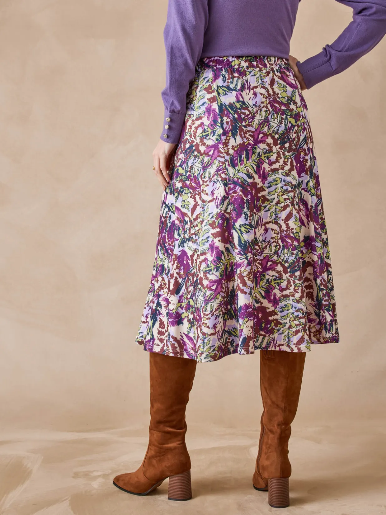 Une maille douce, un bel imprimé, une ceinture élastiquée… autant d’atouts qui nous font craquer pour cette jupe évasée. Avec un pull, elle compose une tenue parfaite. Vous pourrez aussi l’associer à un joli chemisier uni : sa ceinture est plate devant, pour éviter les surépaisseurs, votre allure est impeccable.