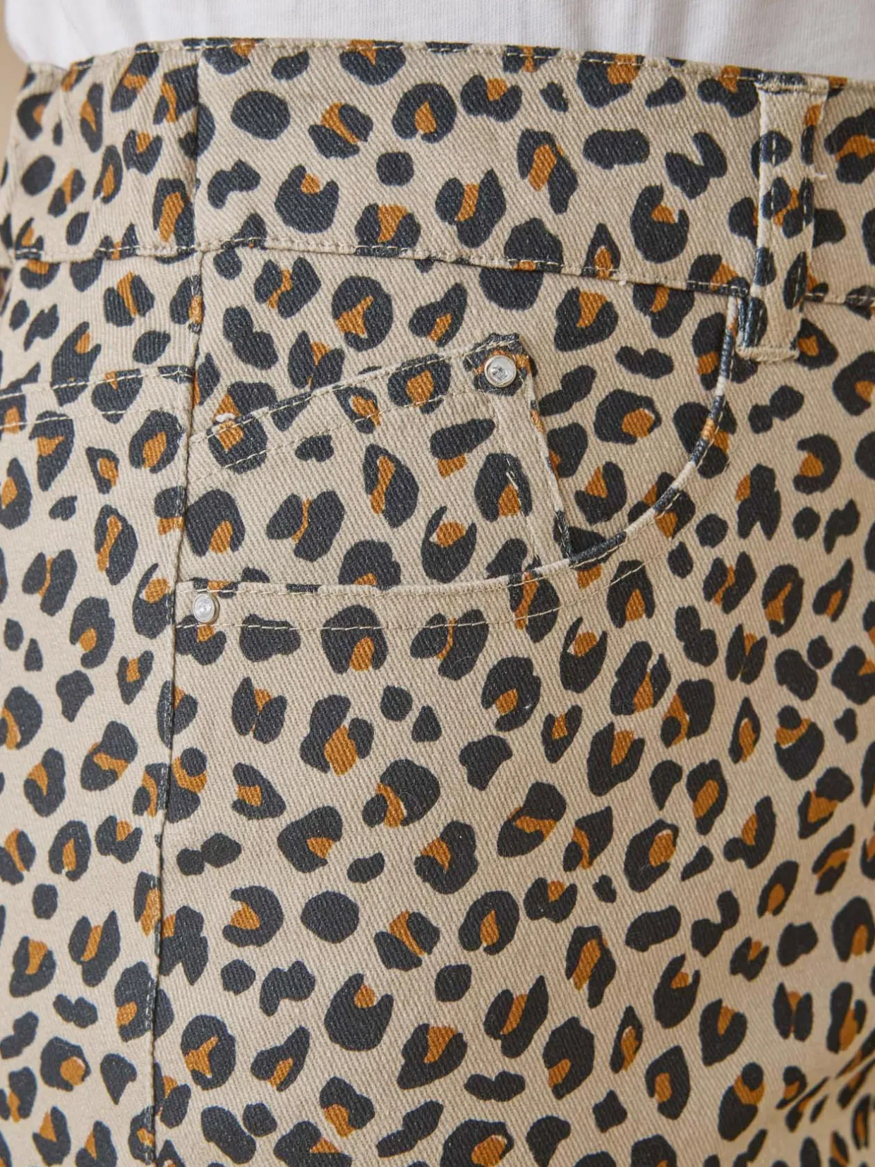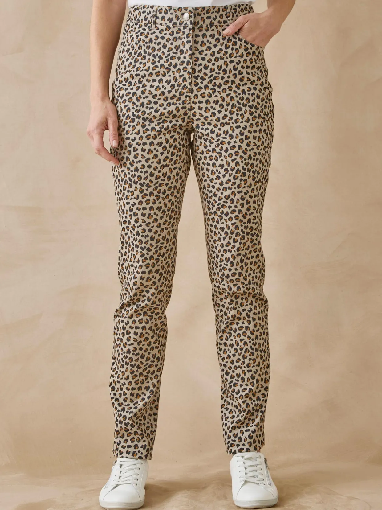 L’incontournable 5 poches s’interprète en version pantalon dans un tissu sergé extensible agréable à porter et se décline dans un impirmé peau de bête incontournable de la saison… Le petit plus : les broderies et strass sur les poches dos.