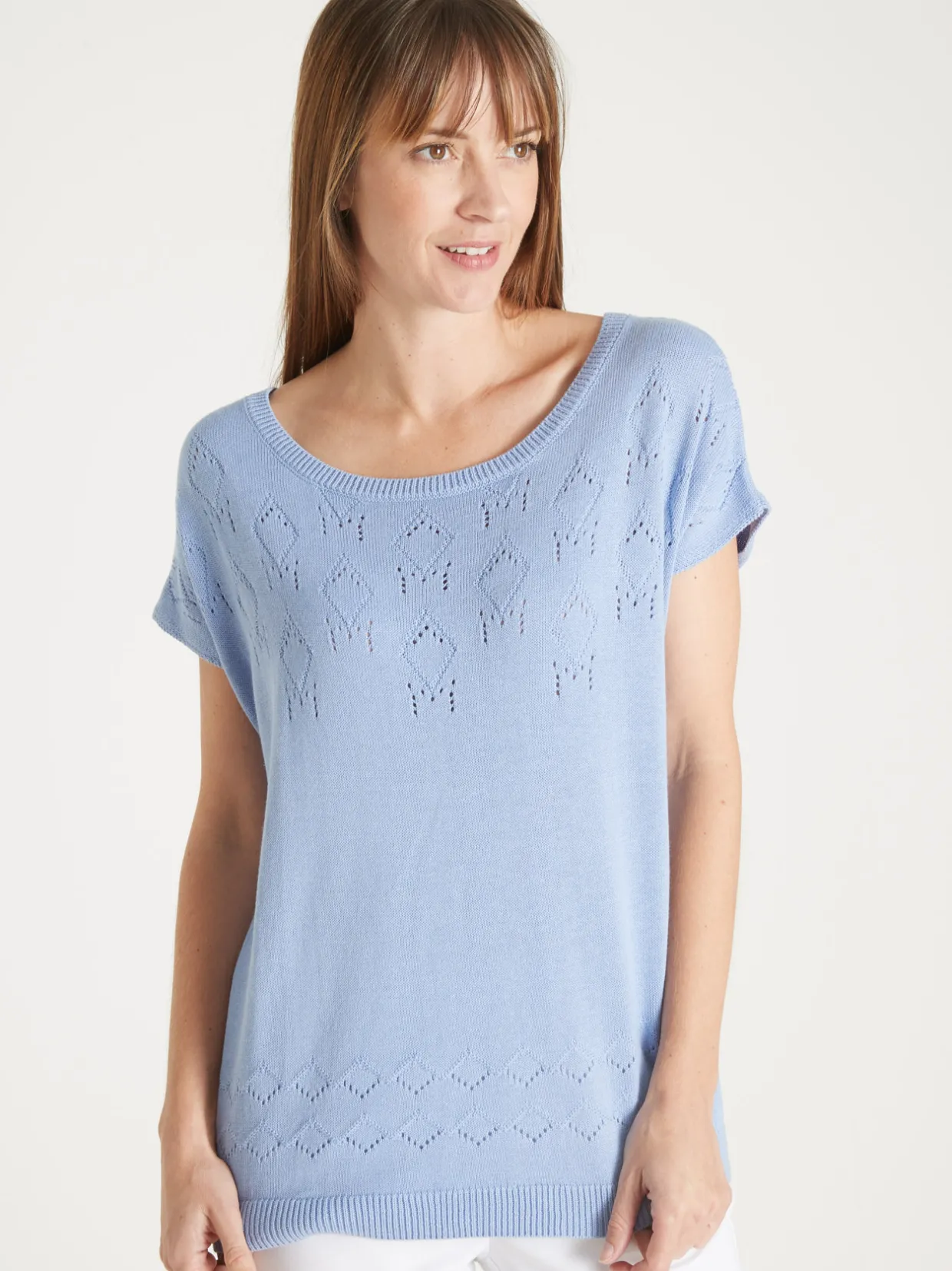 Notre complice de la mi-saison, c’est lui : le petit pull manches T. Avec son jeu de points fantaisie sous l’encolure ronde bien dégagée et à la base, il est une pièce essentielle du dressing.