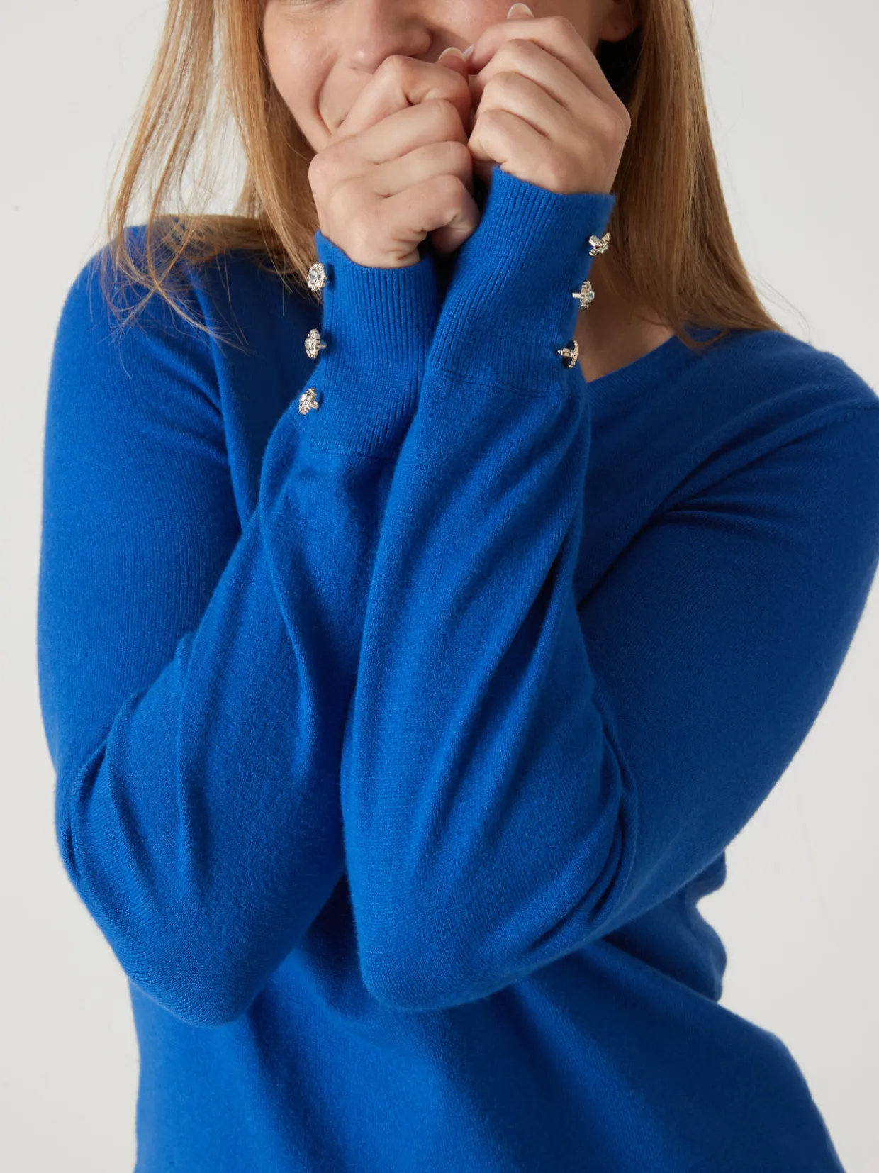 Le pull uni col rond est une valeur sûre du dressing. De jolis boutons-bijoux au bas des manches lui apportent du chic et de l’élégance ! Il vous sera facile d’associer ce pull classique à tous vos pantalons et jupes.