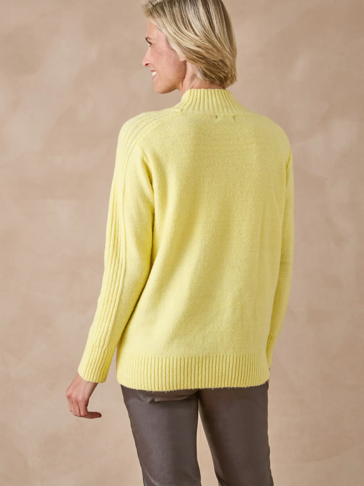 Composé à 50% à base de fibres recyclées, ce pull col montant nous fait aimer encore plus la mode ! Il se décline dans une jolie palette de coloris, faciles à associer à tous nous pantalons et jupes.