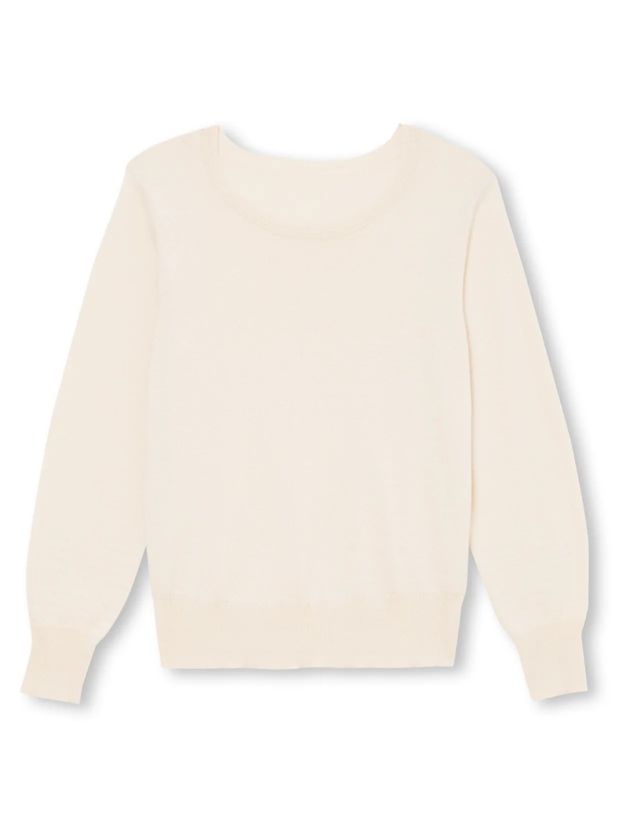 La qualité, la douceur et la chaleur d’un pull pure laine uni. Un point fantaisie à l’encolure est la petite touche de féminité et raffinement supplémentaire.