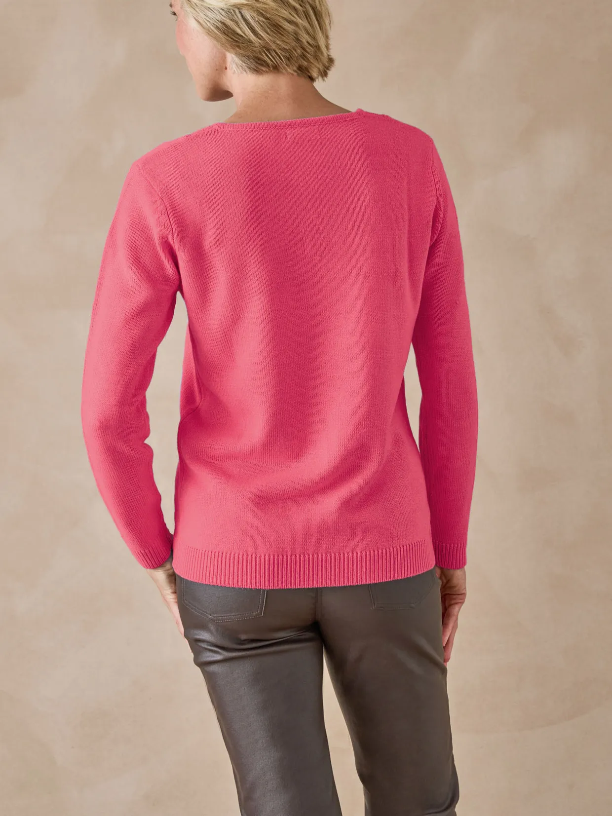 Encolure V. Finitions bords-côtes.