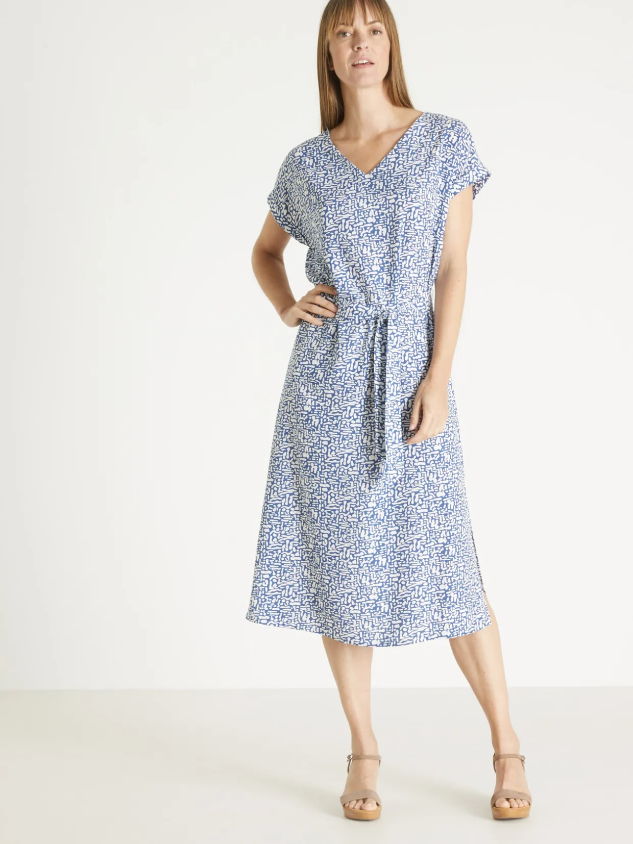 Cette robe imprimée femme est conçue pour s’adapter à toutes les morphologie : petites et grandes tailles.