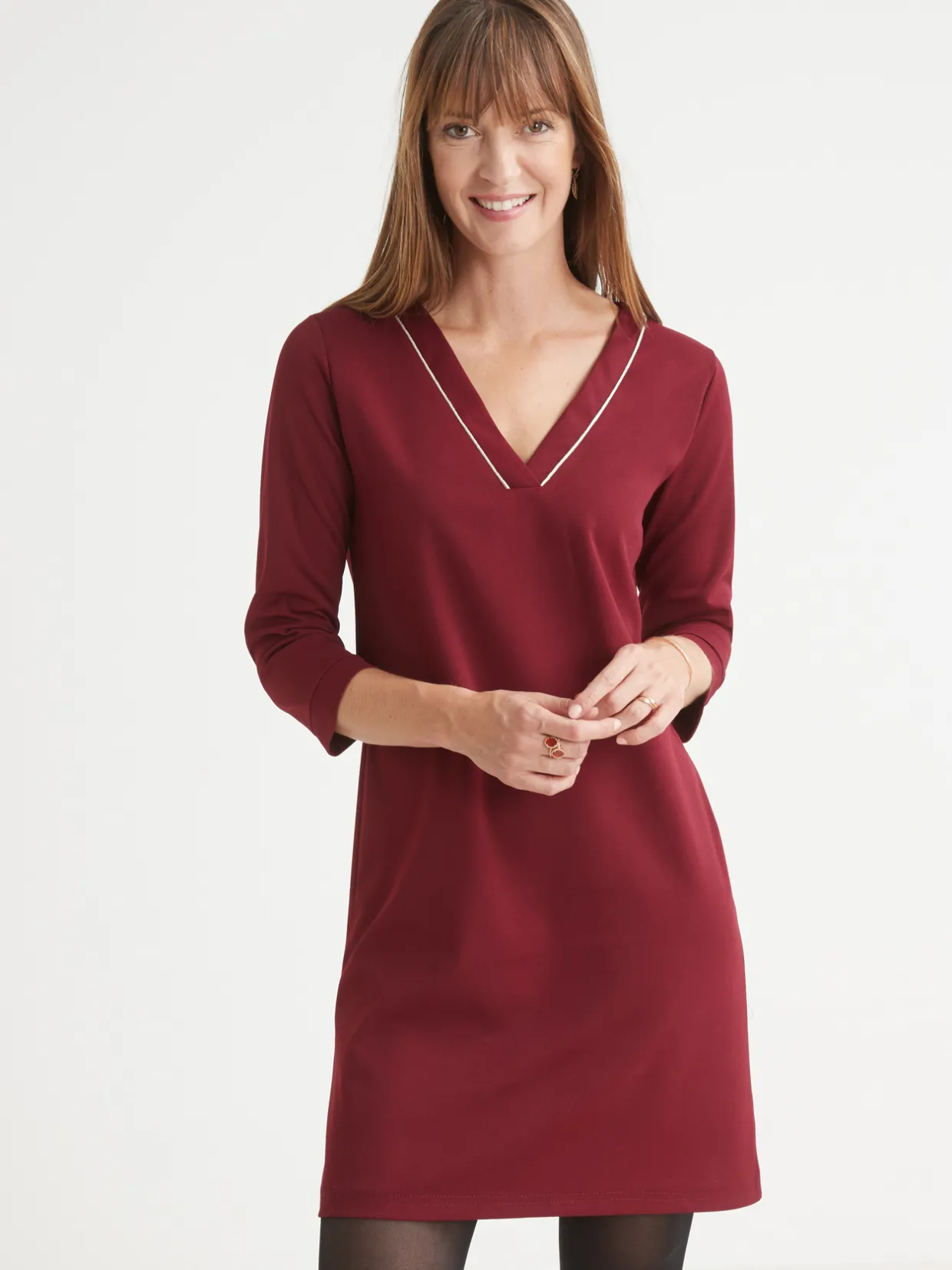 Un passepoil doré fait pétiller le décolleté : le détail qui fait toute la différence !
