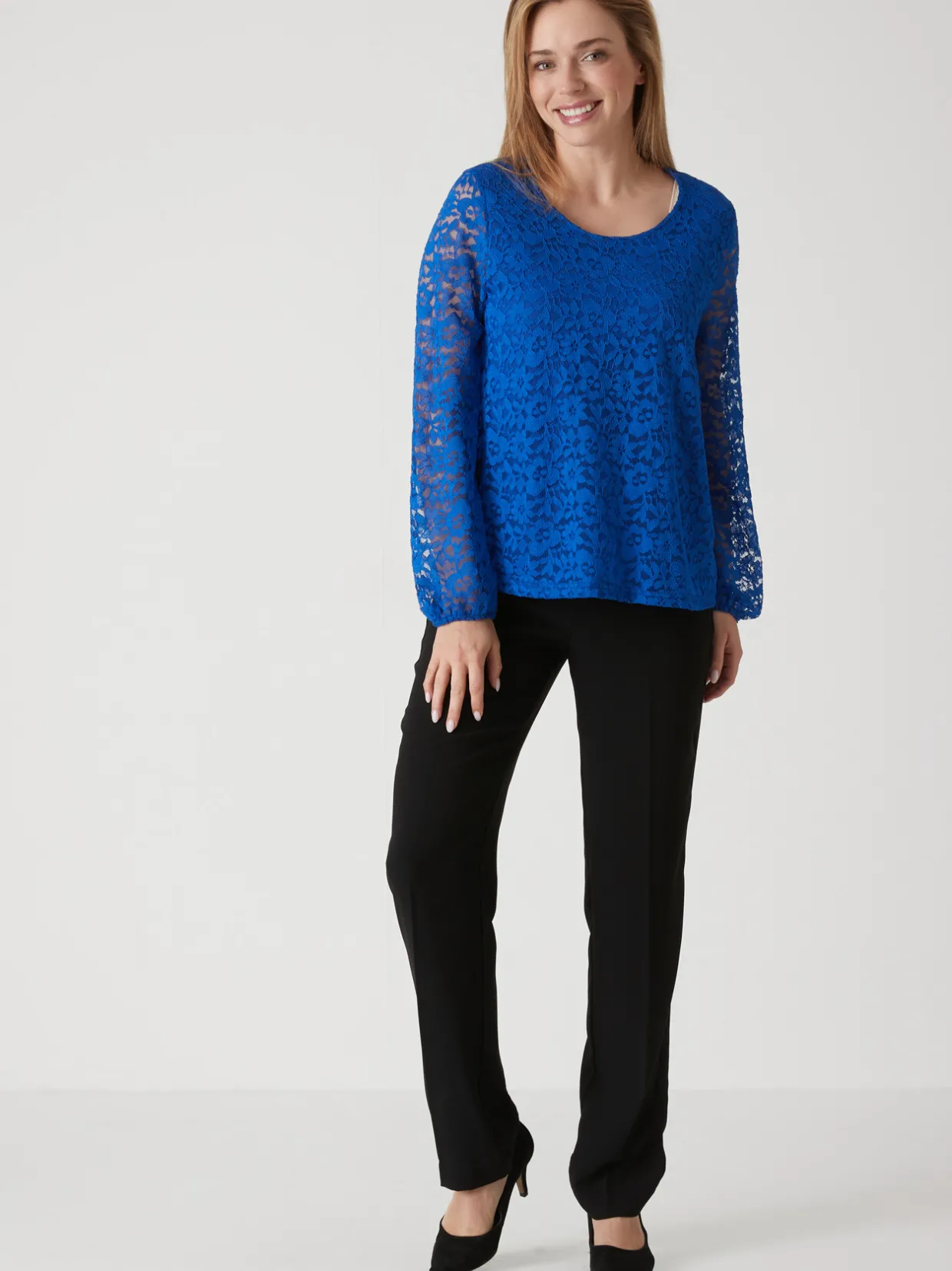 Ce tee-shirt dentelle est conçu pour s’adapter à toutes les morphologies : petites et grandes tailles.