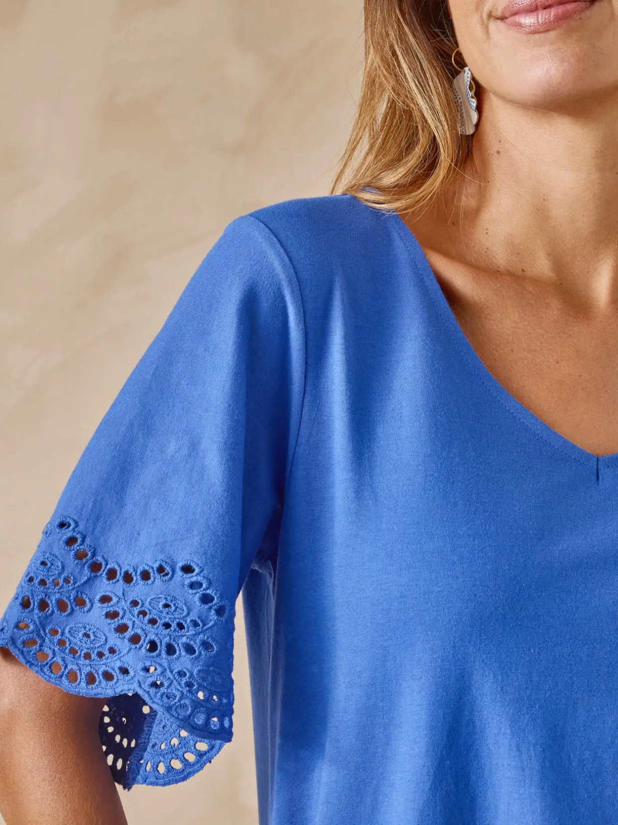 – Broderie ajourée au bas des manches papillon