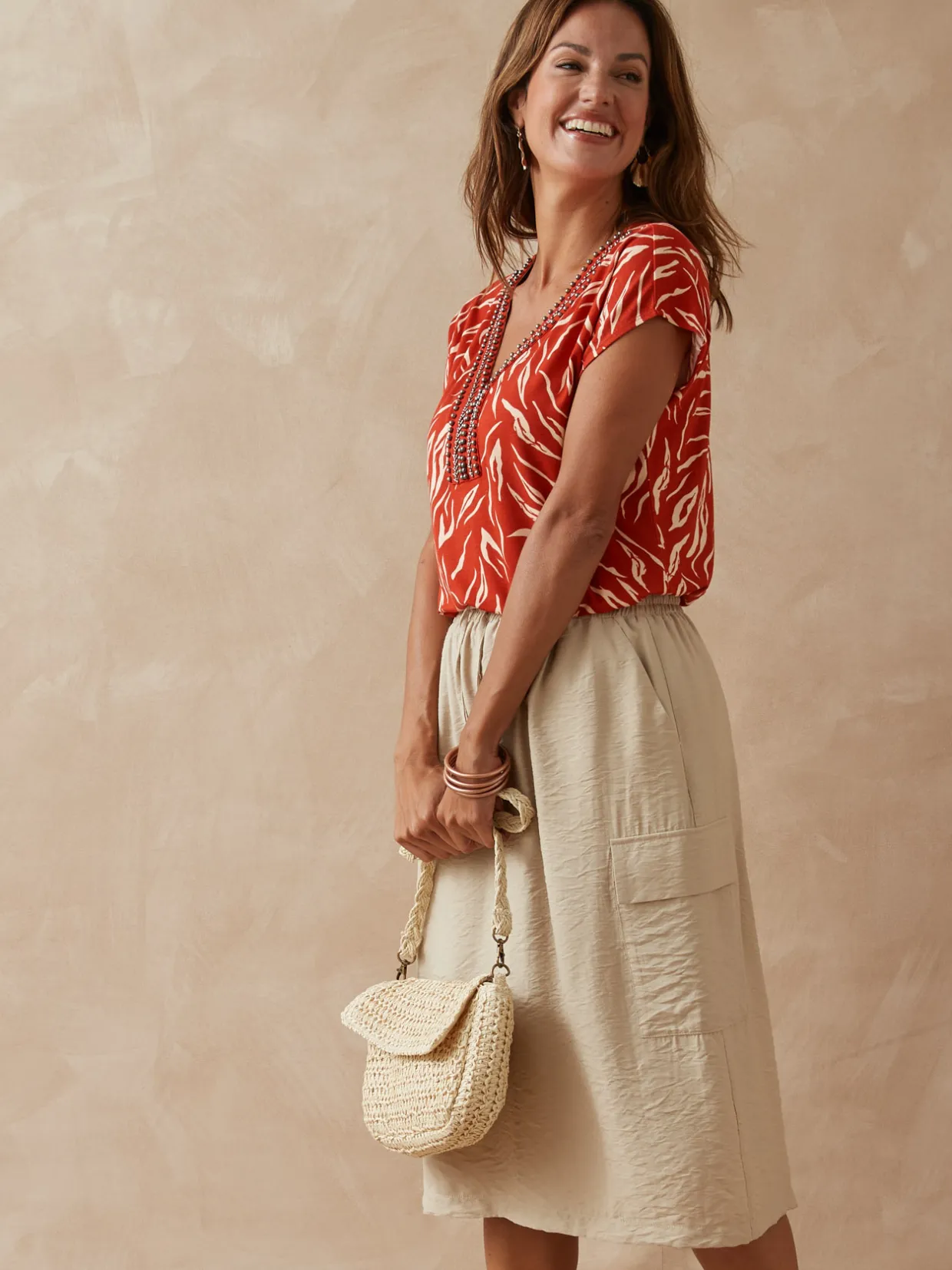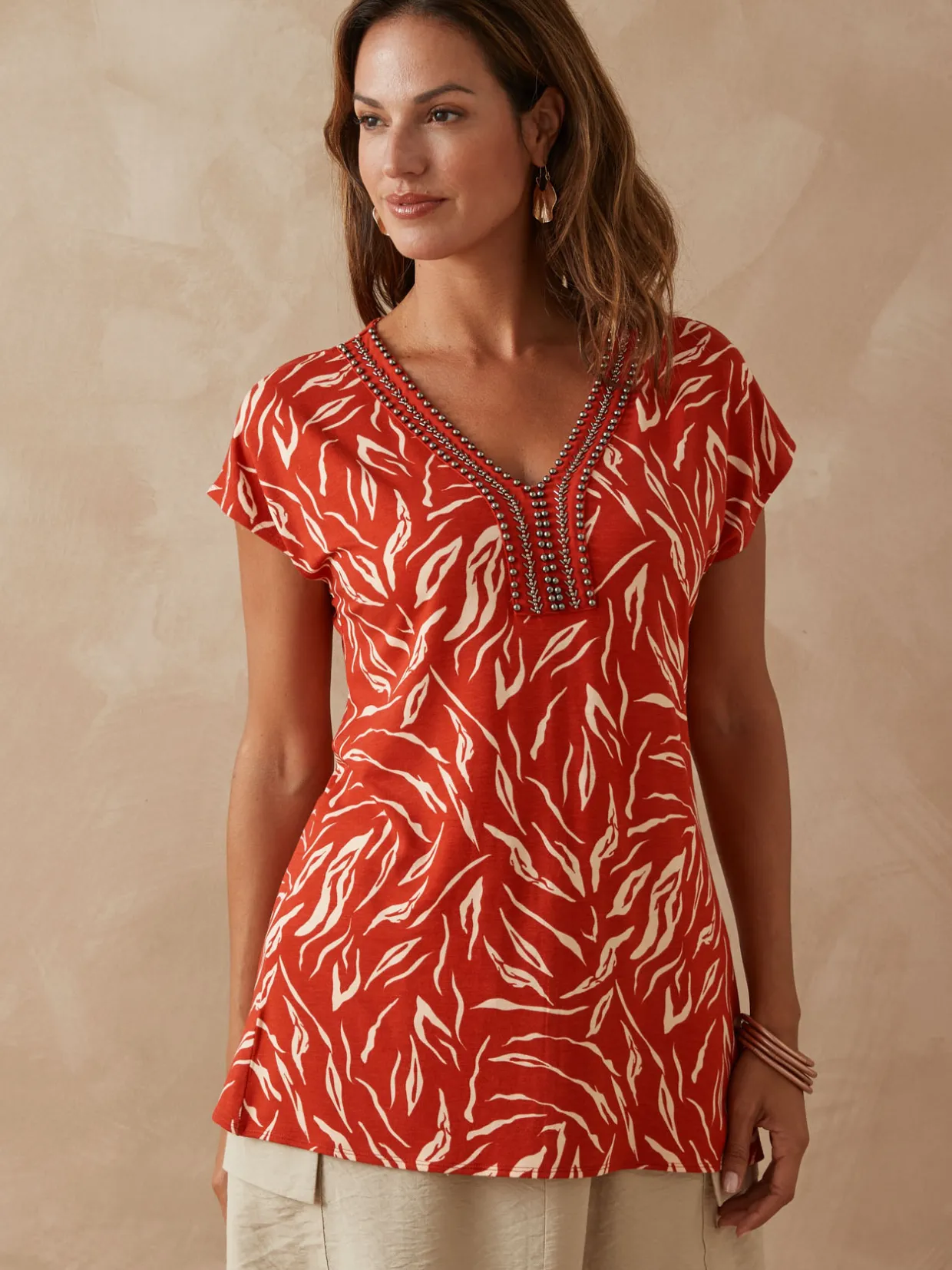 Ce T-shirt imprimé femme est conçu pour s’adapter à toutes les morpholgies : petites et grandes tailles.