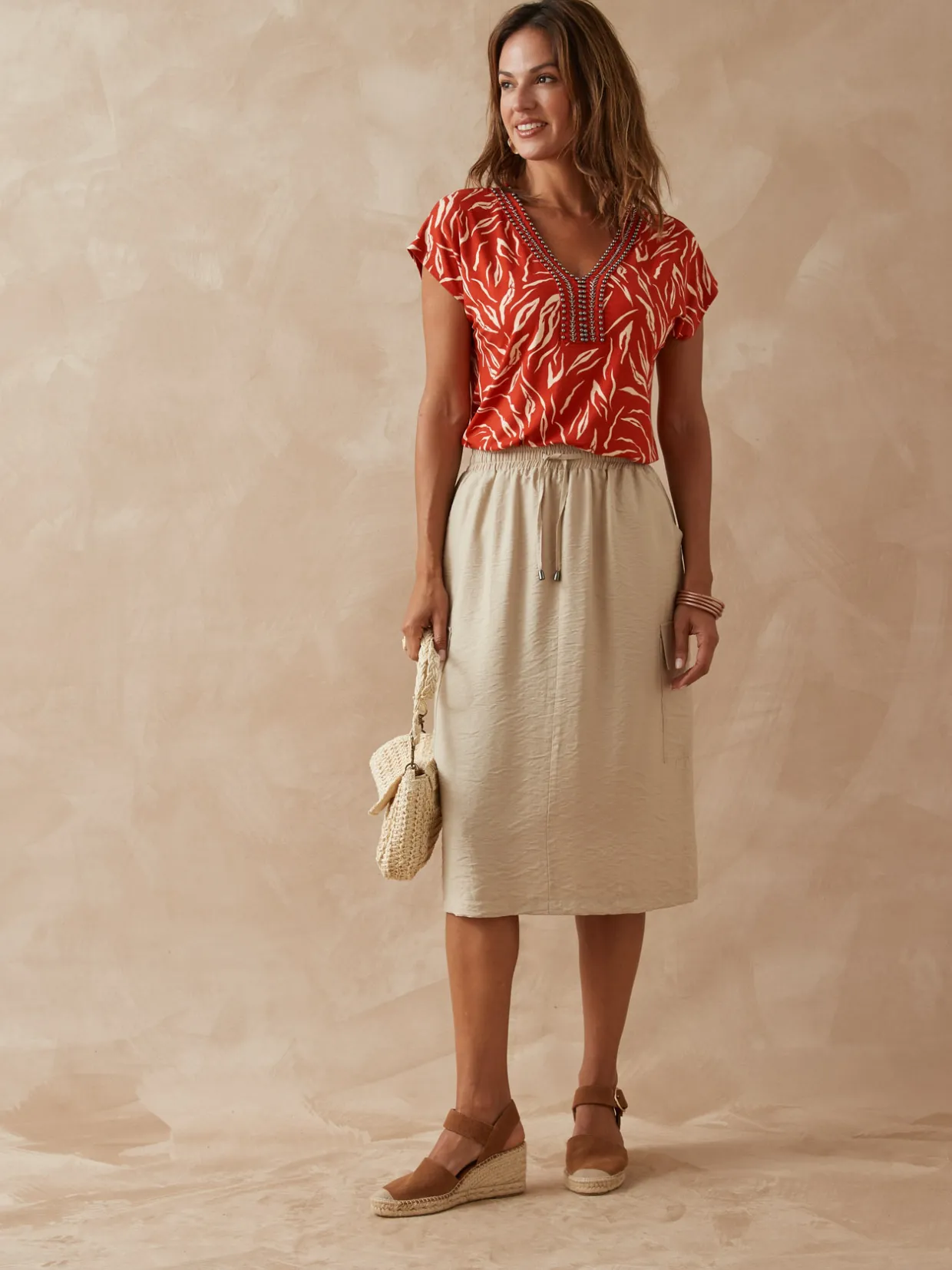 Une perle du dressing, ce t-shirt fantaisie… De jolies perles argentées sont cousues sur la bande unie soulignant le décolleté V : un superbe effet ! Sa maille est enrichie d’élasthanne lui donnant de l’extensibilité.