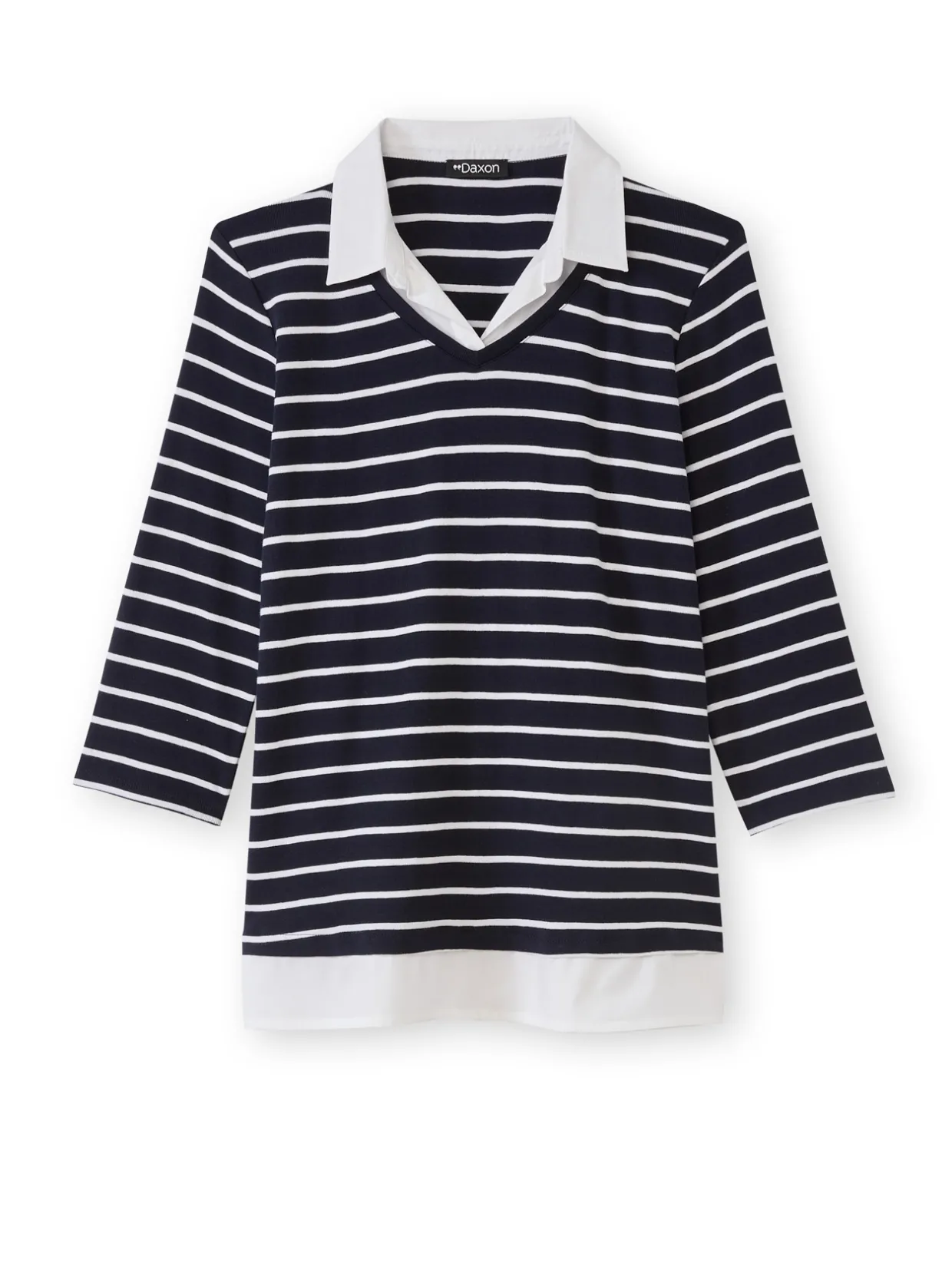 Ce tee-shirt rayé effet 2 en 1 femme est conçu pour s’adapter à toutes les morphologies : petites et grandes tailles.