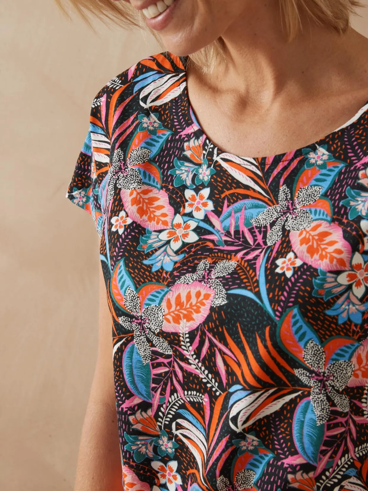 Une encolure bateau flatteuse, des manches T pour l’aisance, une maille extensible tout confort et un imprimé chatoyant… autant d’atouts qui font de cette tunique fluide notre chouchou de la saison ! Vous la porterez avec ou sans sa ceinture unie, comme il vous plaît !