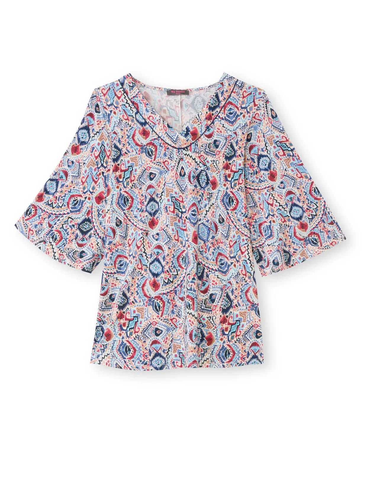 Cette tunique manches évasées est conçue pour s’adapter à toutes les morphologies : petites et grandes tailles.