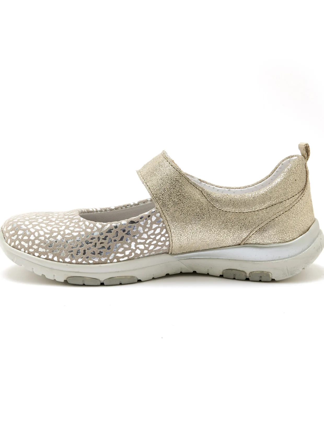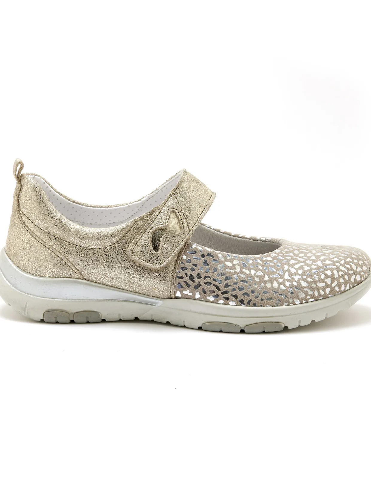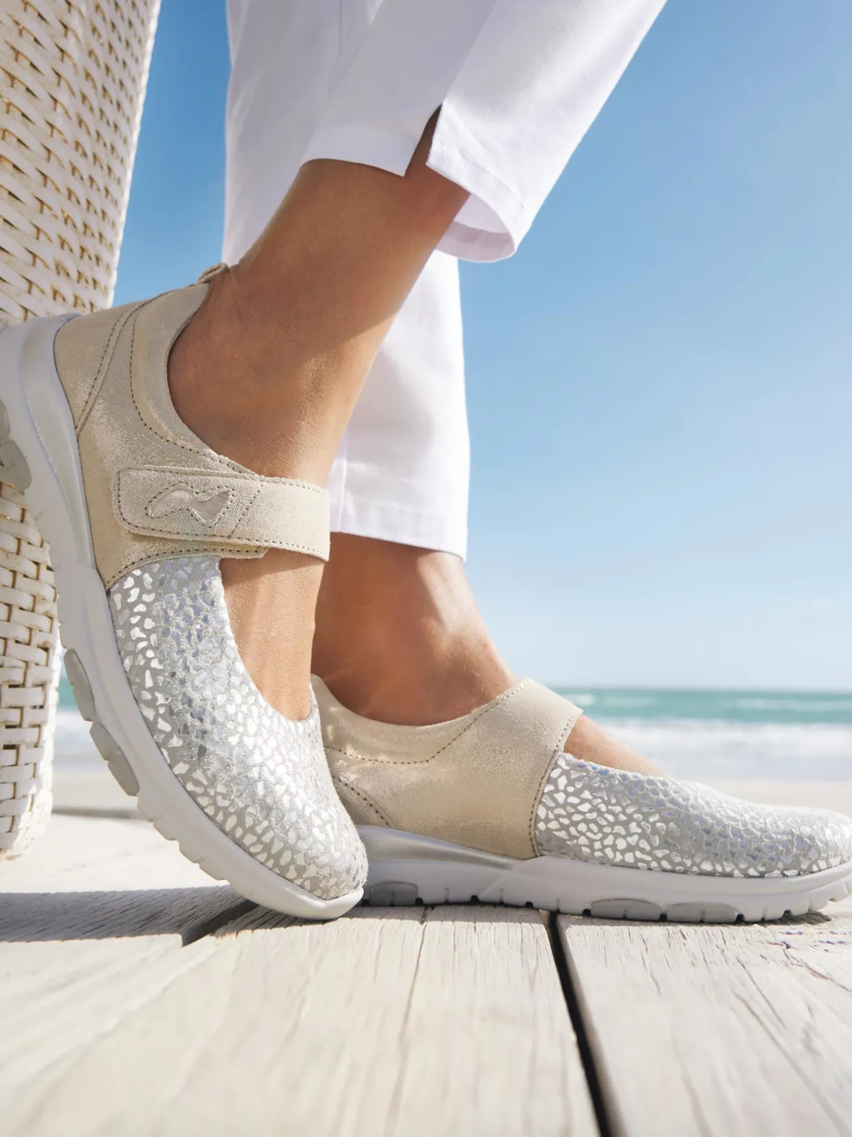 Tout confort, avec la fantaisie de petits motifs brillants sur le dessus : ces babies PEDICONFORT® nous accompagnent tout l’été avec élégance ! Grâce à leur patte scratch, elles s’ajustent parfaitement au cou-de-pied.