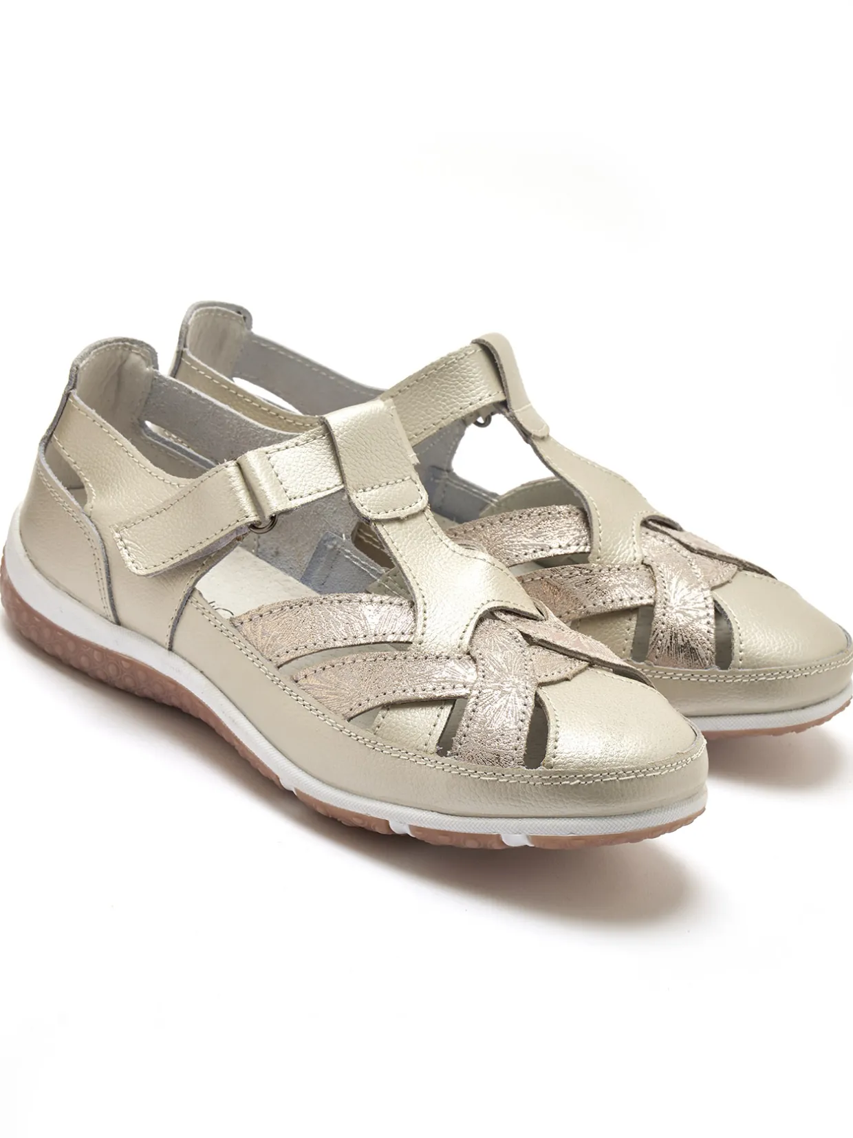 Un jeu de lanières entrecoisées donne du style à ces babies PEDICONFORT®, tout en tenant bien au pied. Le supplément de confort : la semelle intérieure sur mousse épaisse !