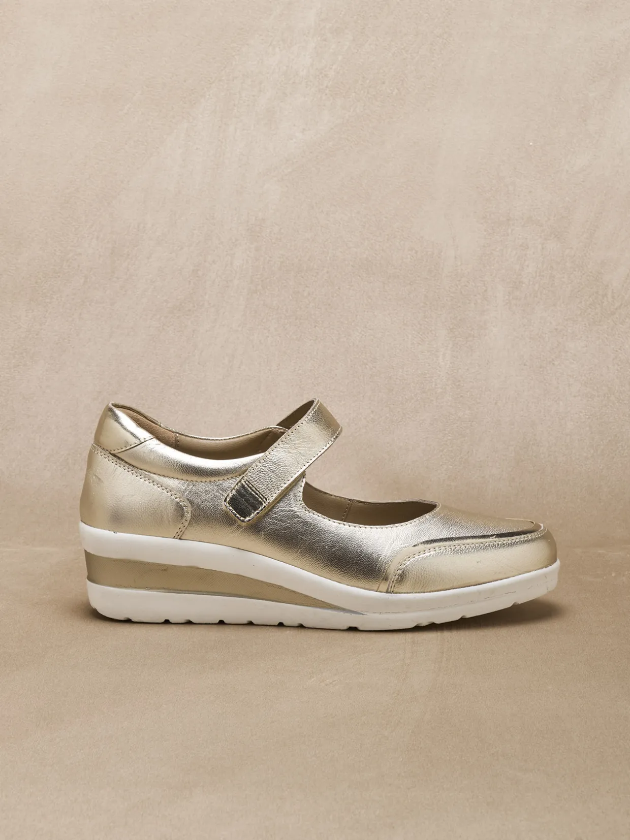 Et si vous mettiez une touche d’éclat à vos pieds avec ces babies dorées PEDICONFORT® ? Elle jouent le combo parfait du style et du confort, avec leur patte scratch permettant un ajustement quasi sur mesure au cou-de-pied.