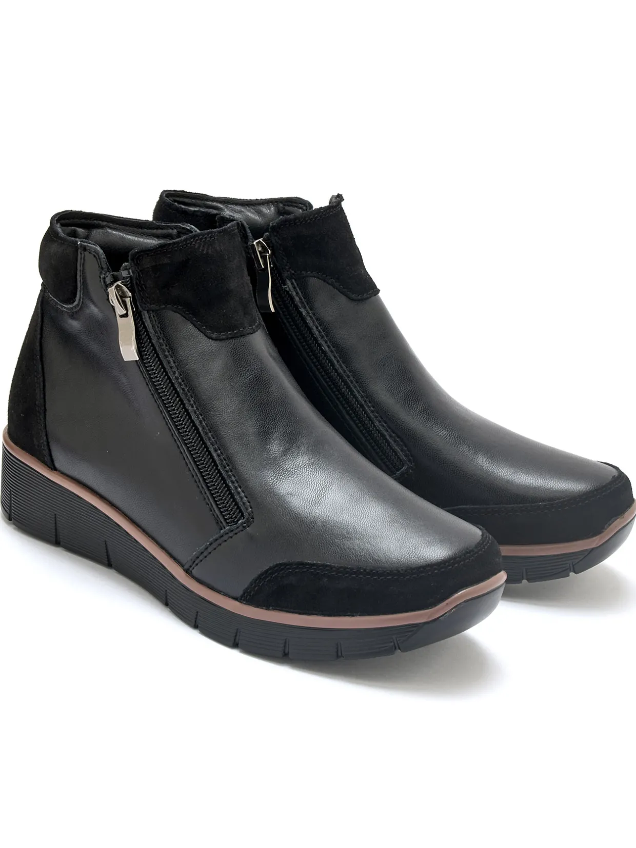 Avec leurs détails cuir velours et leur semelle compensée crantée, ces boots PEDICONFORT® conjuguent style, confort et modernité. L’astuce pratique : le double zip qui vous permettent de les enfiler en un clin d’oeil !