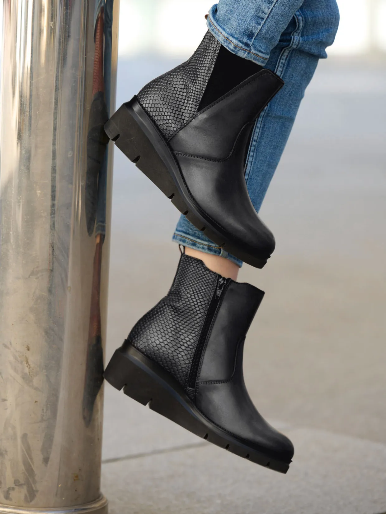 Quel style ces boots compensées avec leur épaisse semelle crantée… Idéales pour allonger la silhouette et dynamiser un look ! On apprécie aussi beaucoup la douceur de leur doublure suédine.