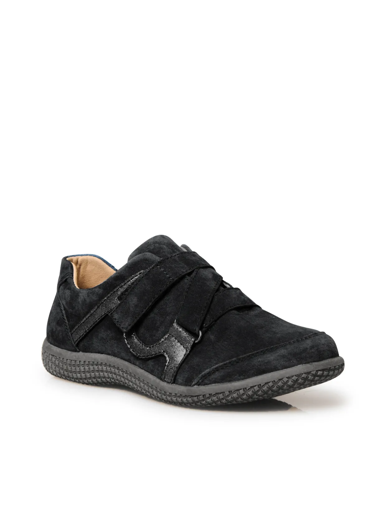 Les derbies PEDICONFORT® s’offrent une petite touche de fantaisie avec leurs empiècements jouant le contraste de matières. La patte scratch est croisée sur le dessus : un détail original qui permet aussi un ajustement parfait au pied.