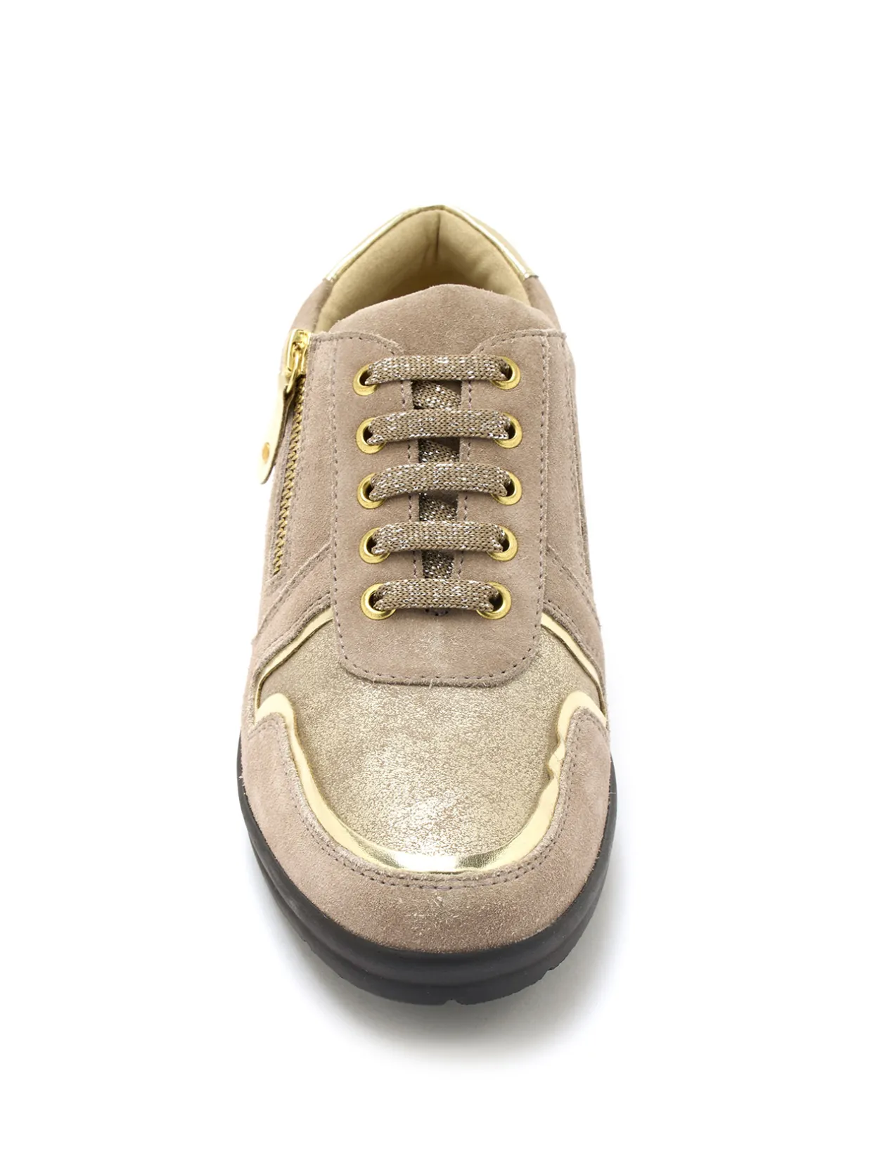 Dessus cuir à détails métallisés.