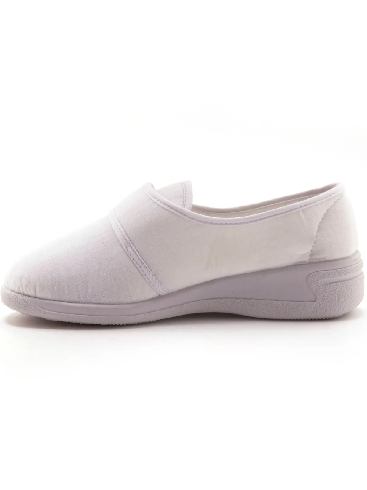 Dessus : toile pur coton. Doublure et semelle intérieure éponge, entièrement montées sur mousse. Semelle semi-compensée : élastomère.